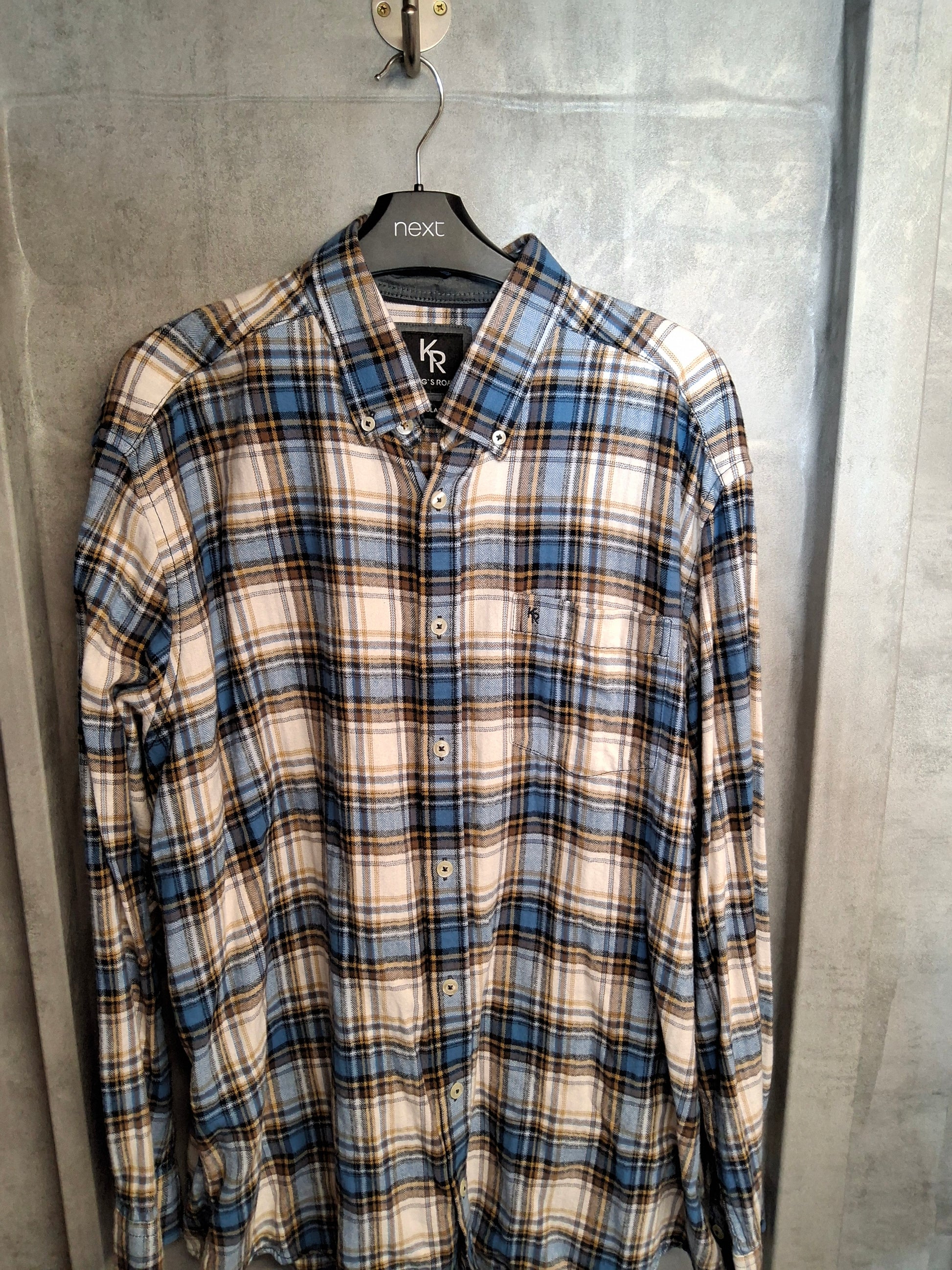 King’s Road Blue, Beige & White Checked Shirt – Men’s XL – 100% Cotton