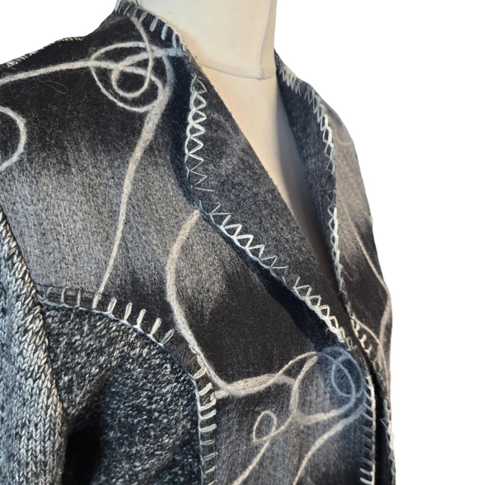 Klass Cardigan Grey Black Pattern Size 16 Open Front Causal