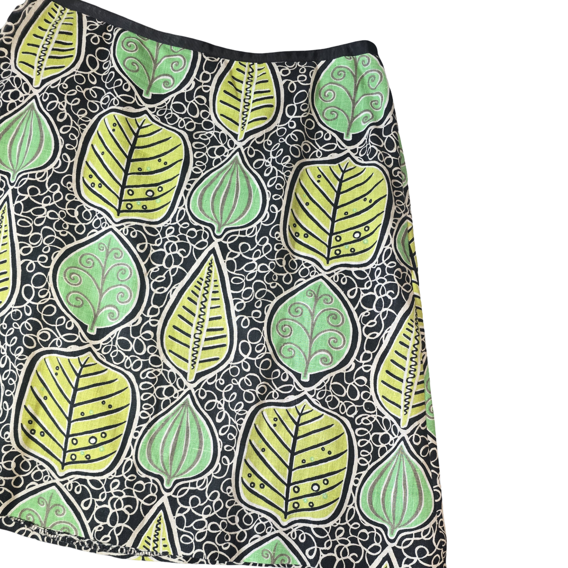 Laura Ashley Black & Green Leaf Print Linen Skirt – Size 18