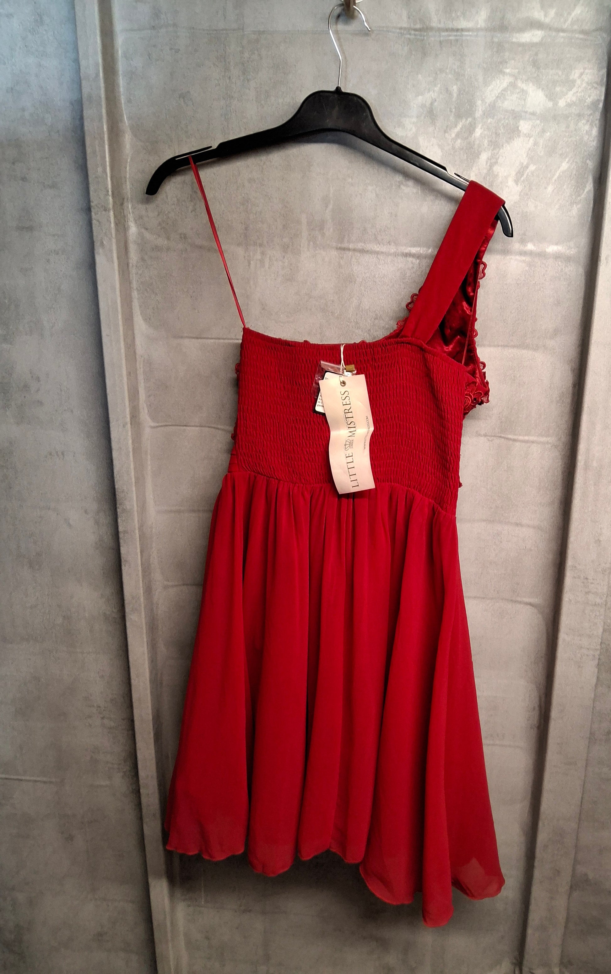 Little Mistress Red One-Shoulder Embellished Mini Dress β Size 6 β NWT