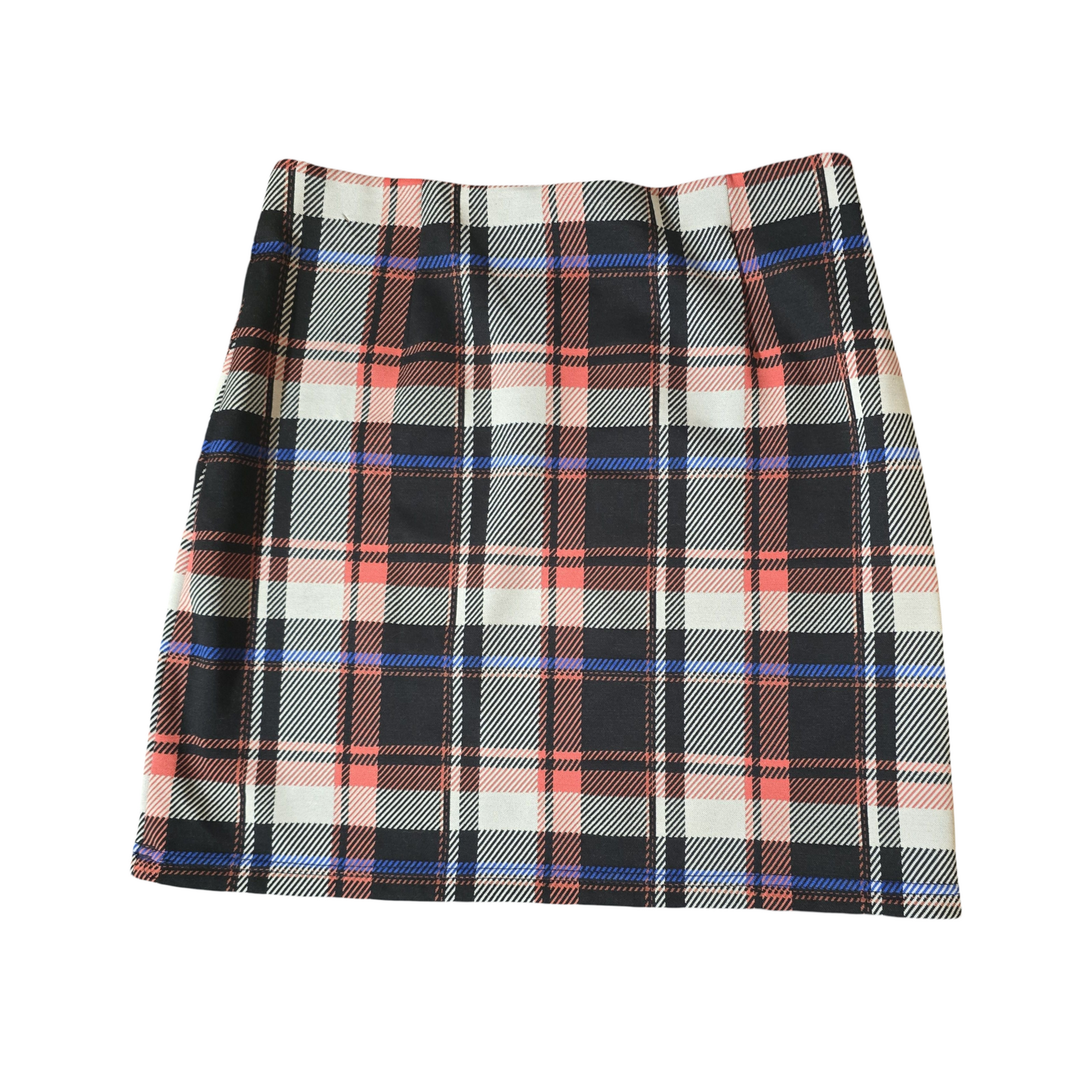 M&S Black, Red & Grey Checked Mini Skirt – Size 10