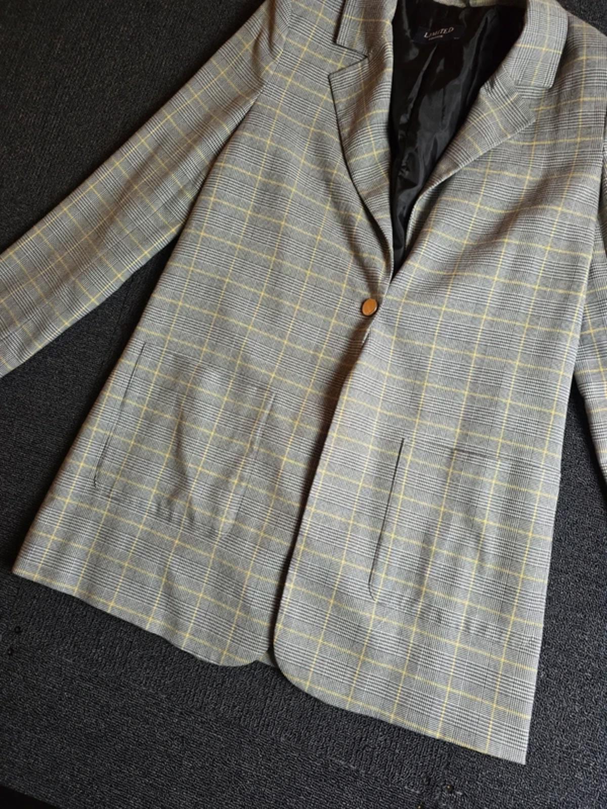 M&S Grey & Yellow Check Oversized Blazer Size 10 β Smart Layering Piece
