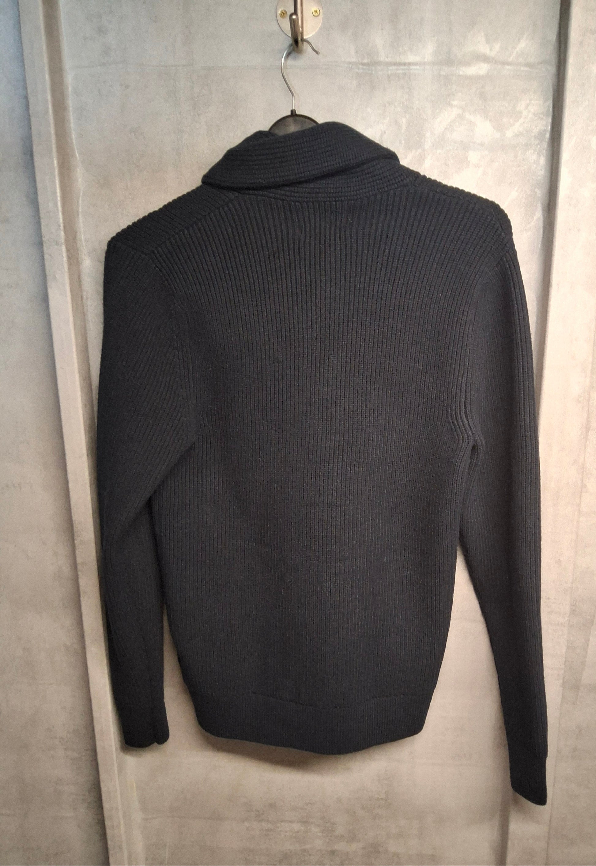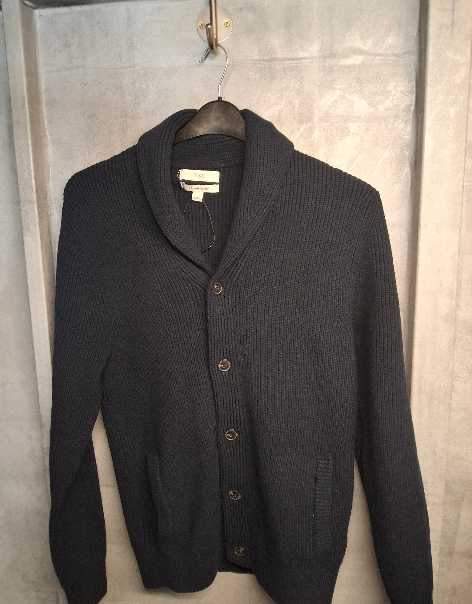 M&S Men’s Navy Knit Cardigan – Shawl Collar, Pockets – Size Small