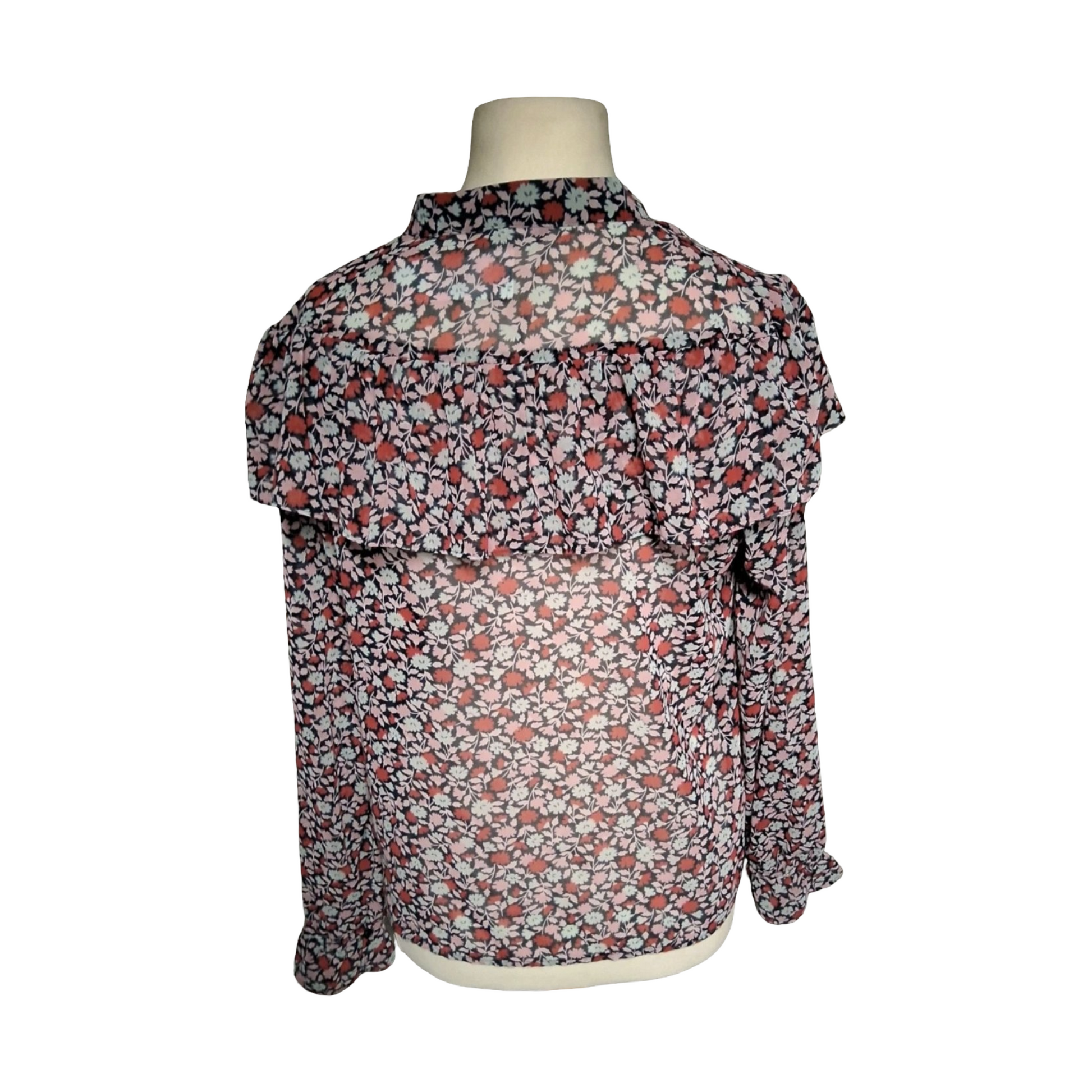 M&S Pink, Red & Navy Floral Sheer Blouse β Size 14