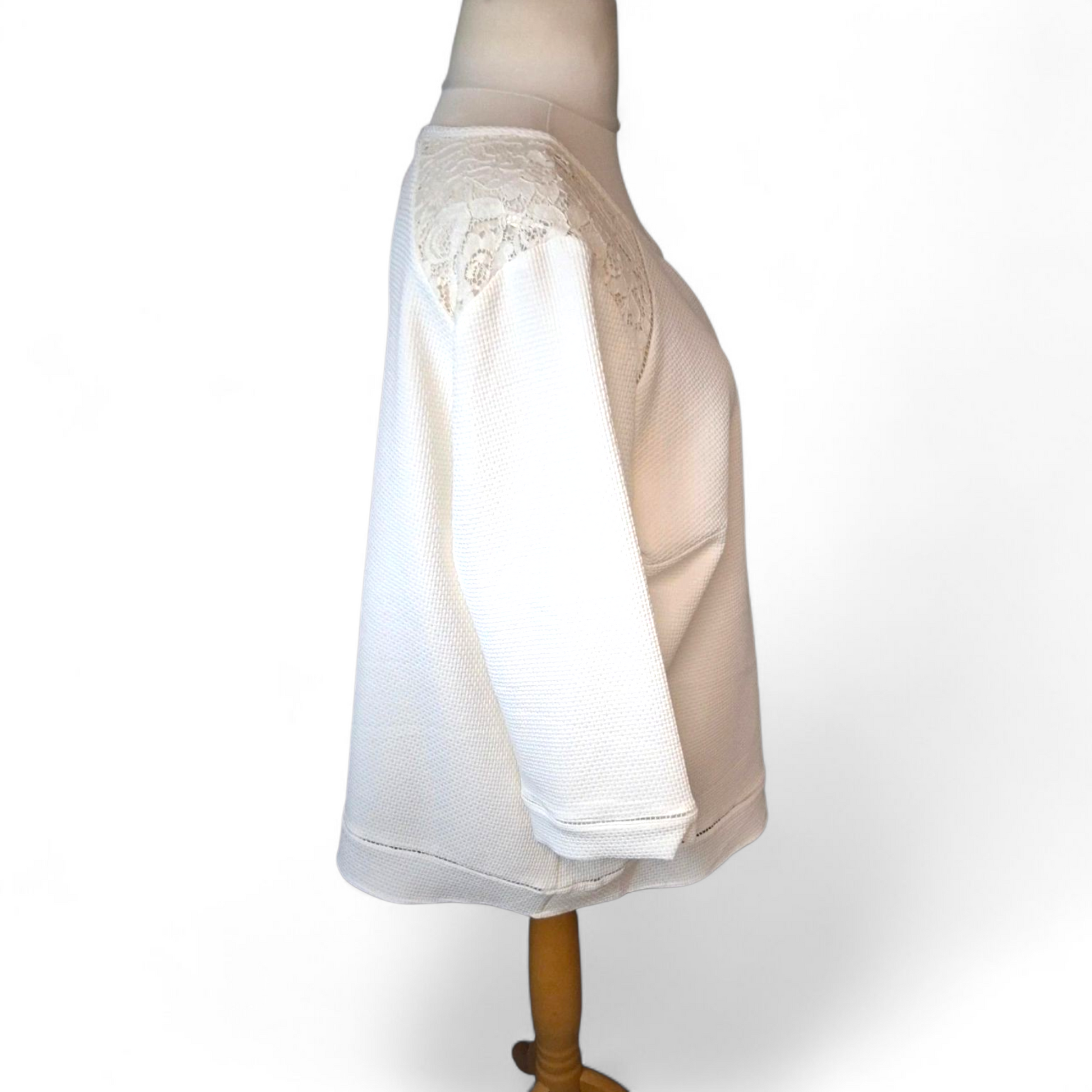 Marks & Spencer Ivory Textured Lace Shoulder Top | Size 20 | 3/4 Sleeve Plus Size Blouse