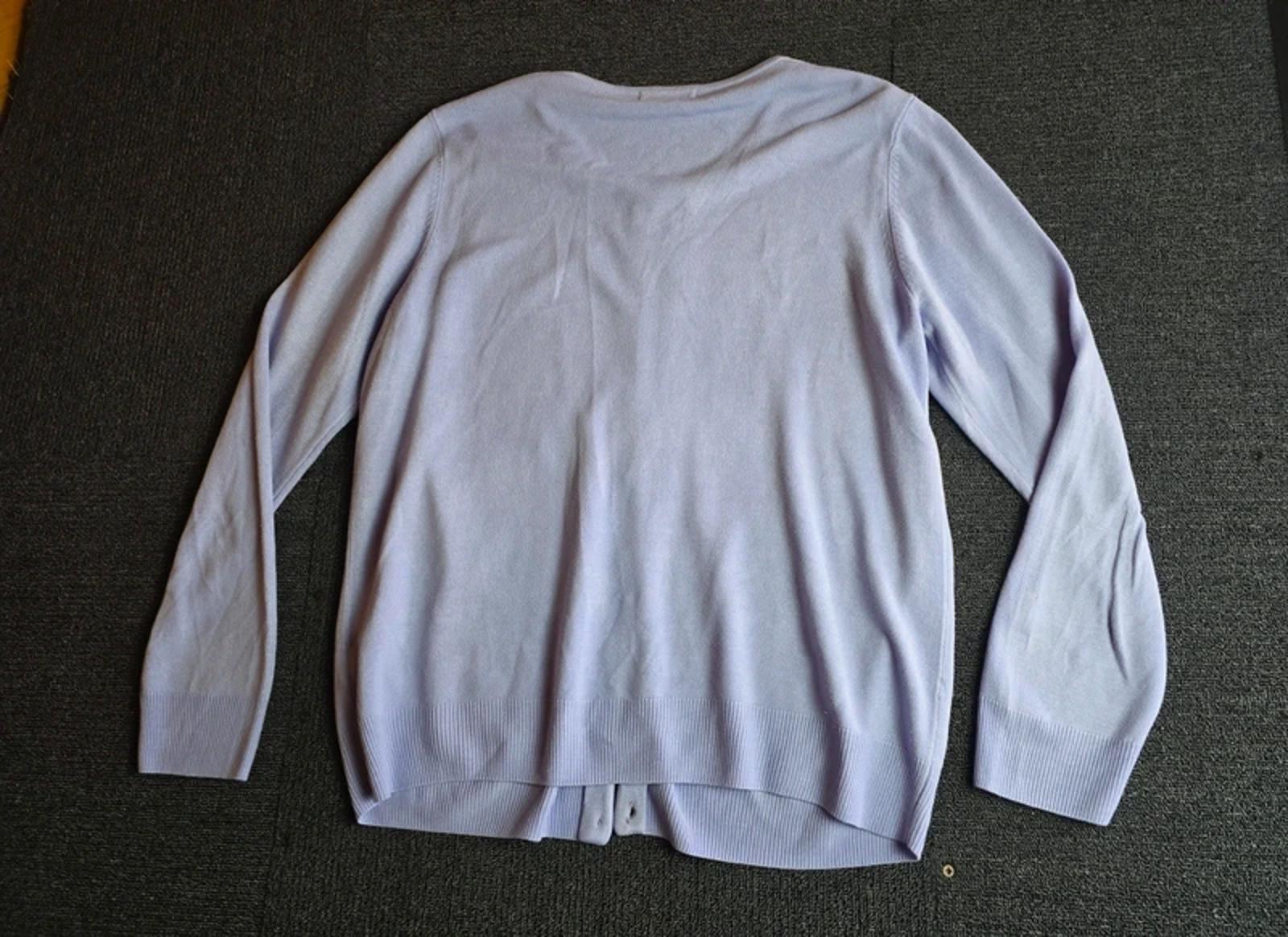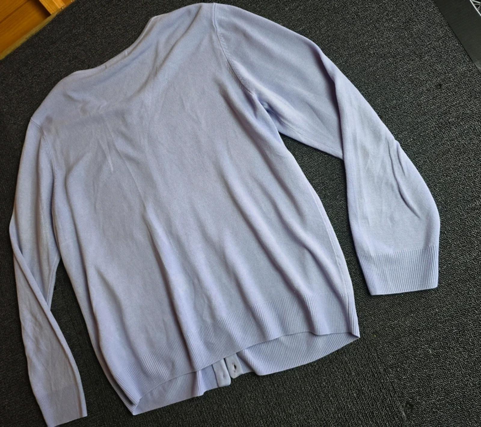 Preloved button-up cardigan in soft lilac, ideal for everyday wear, work or easy layering.
