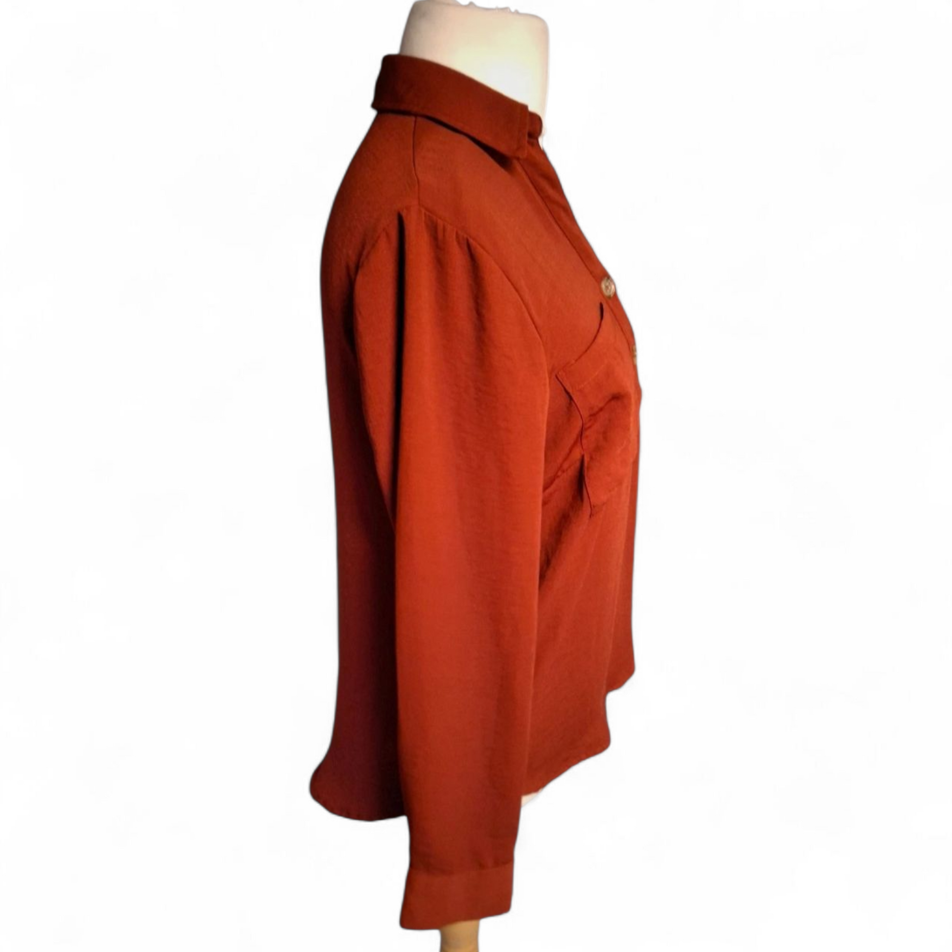 Matalan Burgundy Long Sleeve Blouse – Size 12 – Relaxed Fit with Pockets