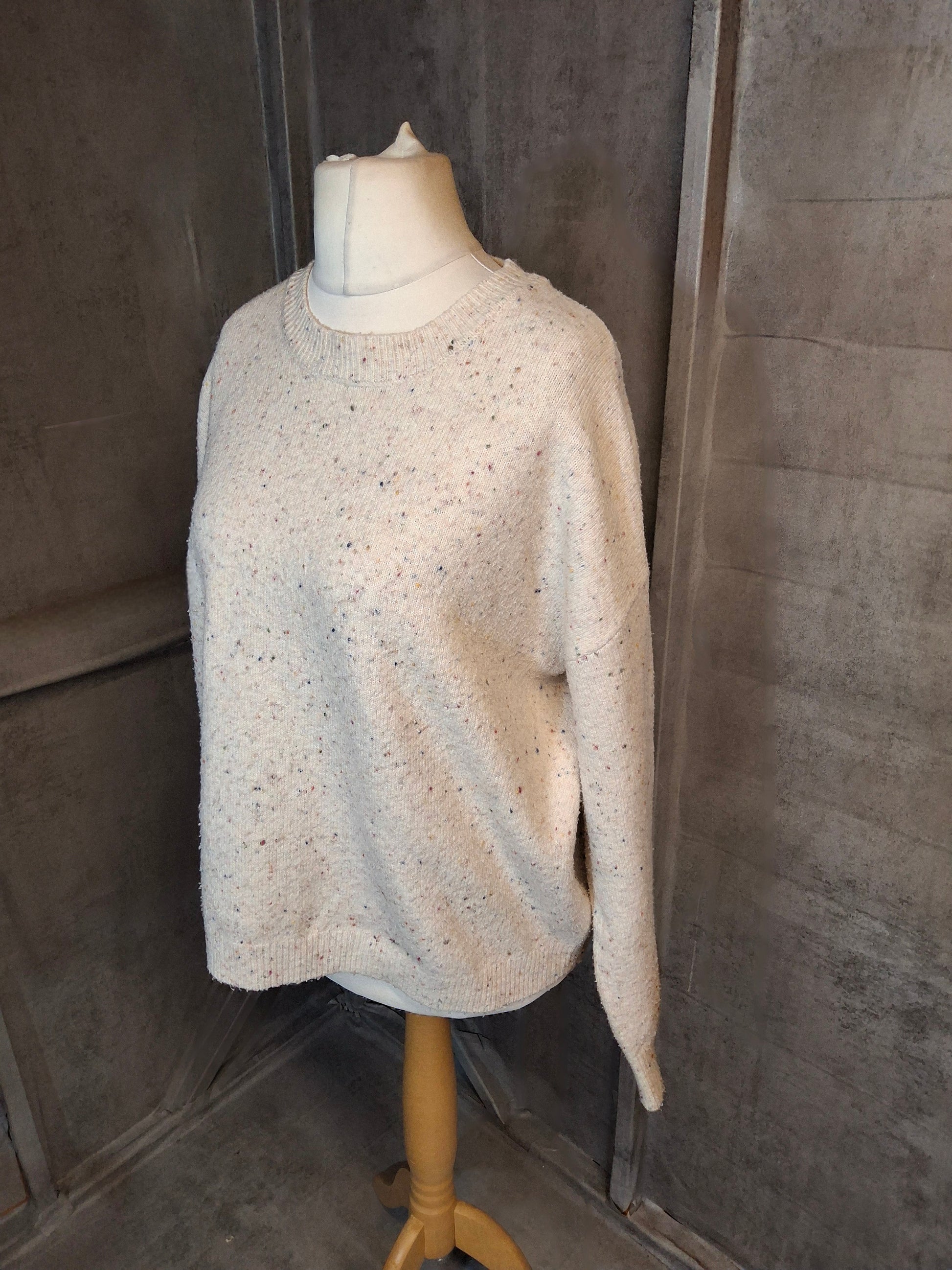 Matalan White Knit Jumper with Multicolour Flecks – Size L (size 16/18) – Relaxed Fit