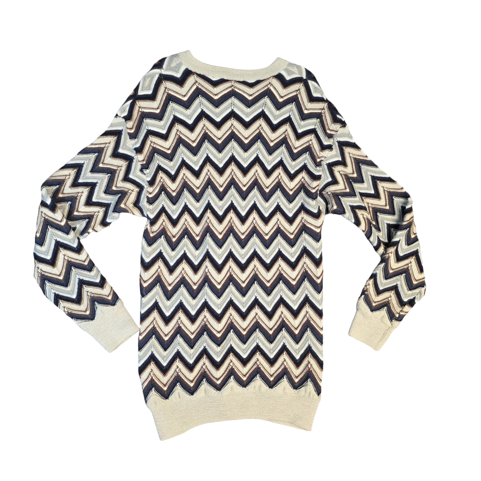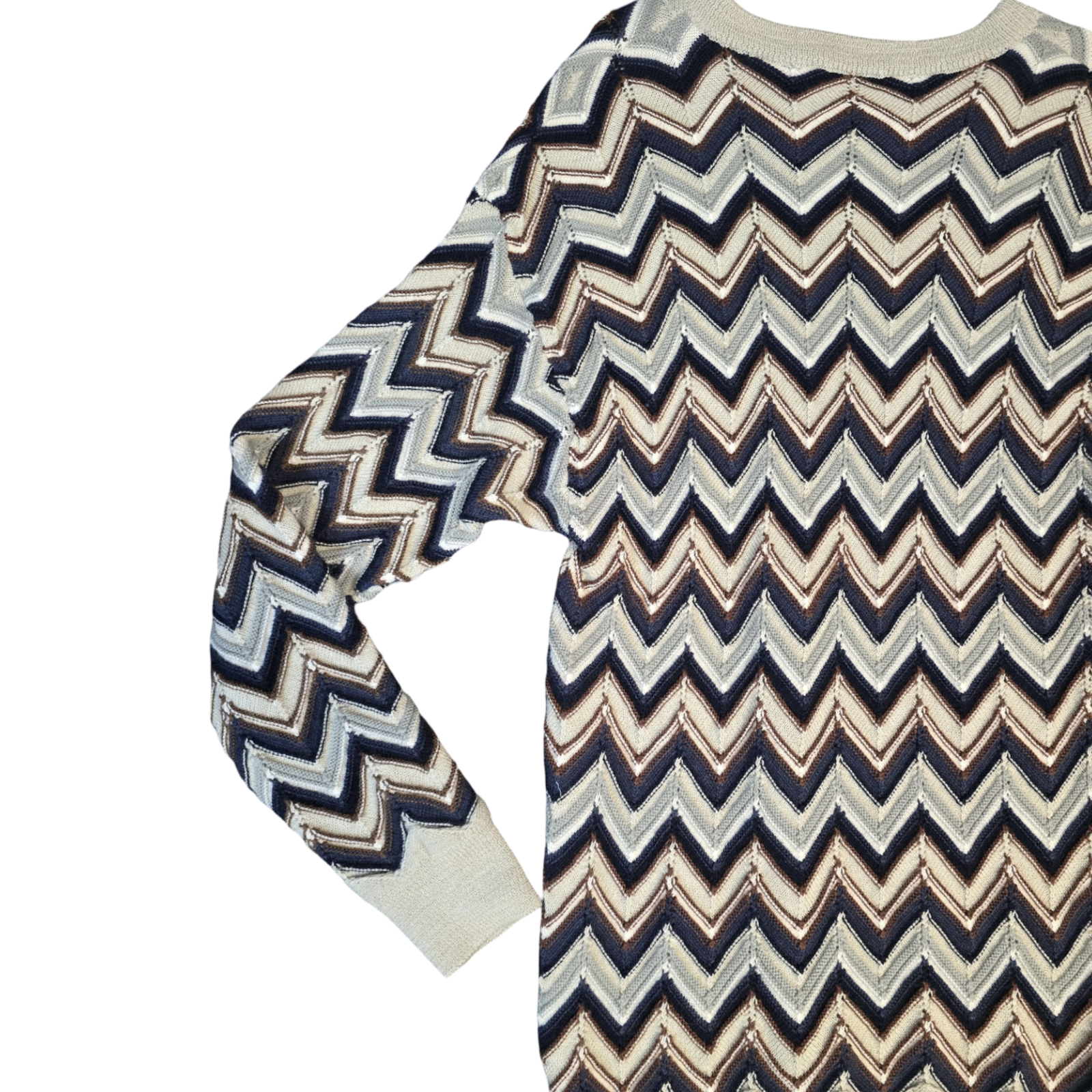 Robert Banks Jumper Beige,Brown & Navy Long Length Chevron Vintage 80s 90s