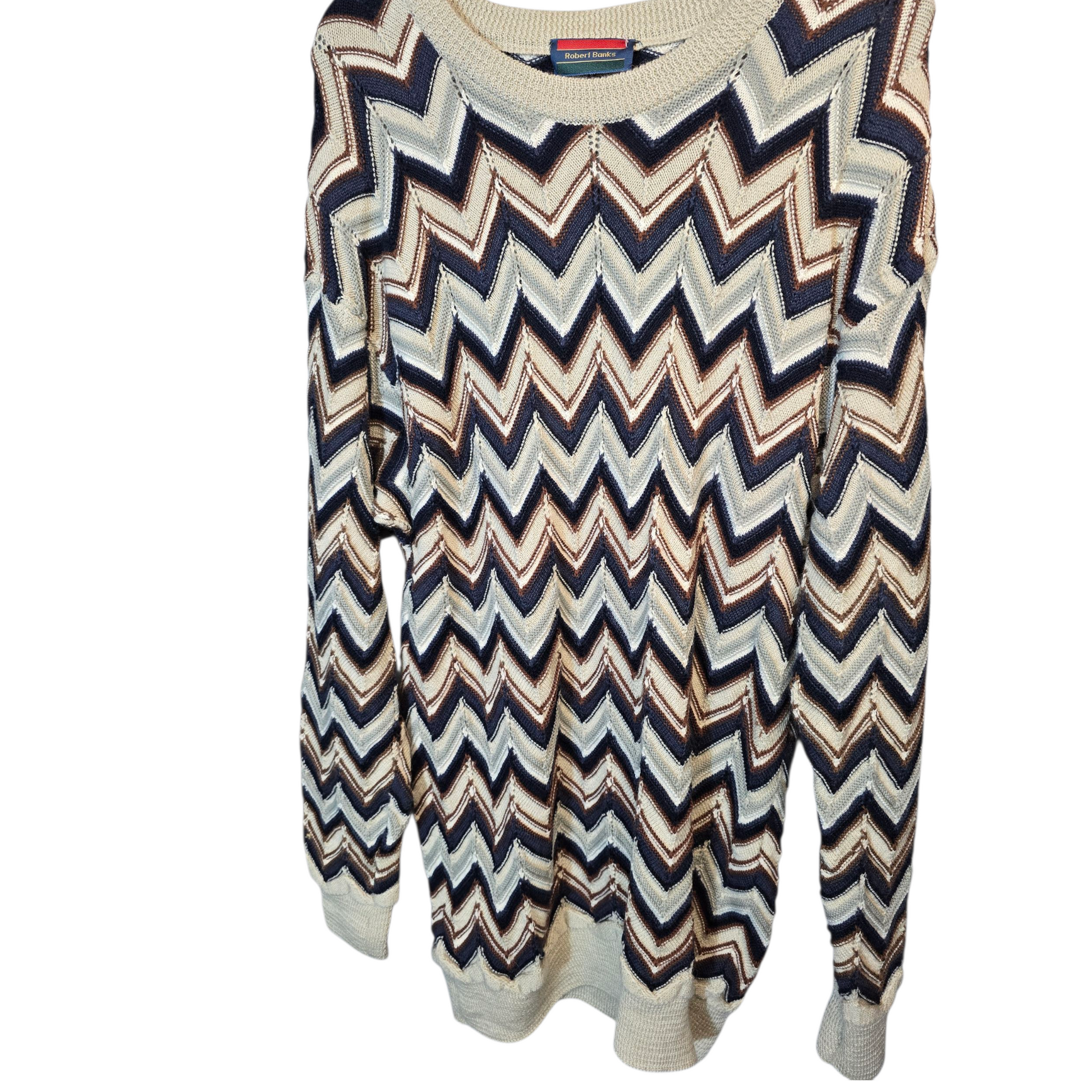 Men’s Vintage Robert Banks Chevron Knitted Jumper – Beige, Brown & Navy – Longer Length