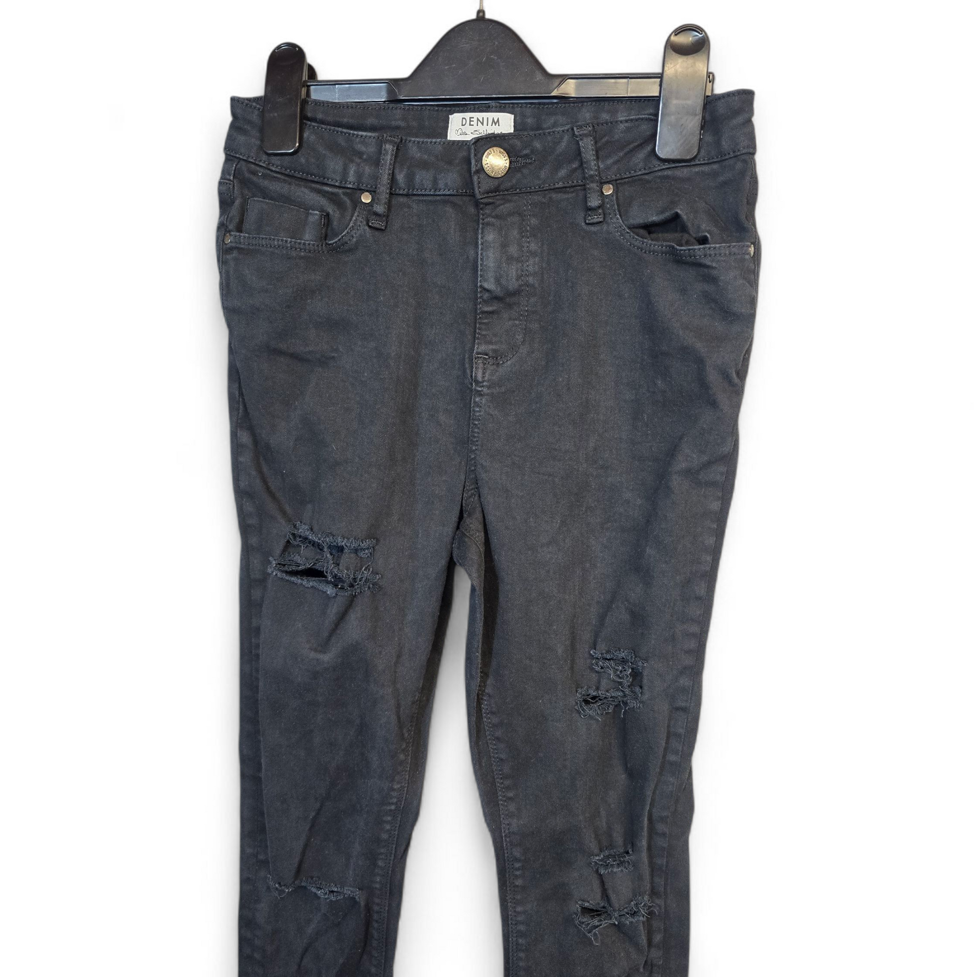 Miss Selfridge Black Ripped Skinny Jeans – High Waisted – Size 10