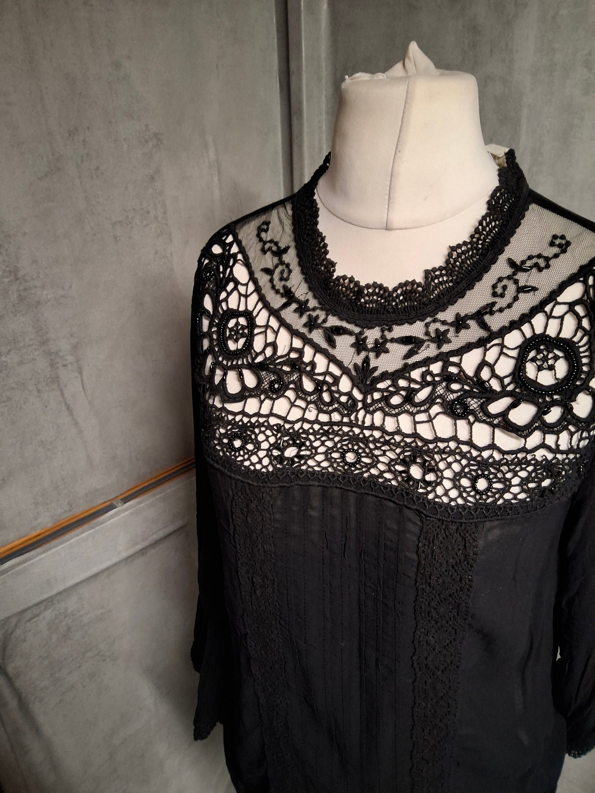 #MonsoonStyle #BlackBlouse #Size12Fashion #LaceDetail #BeadedTop #SheerBlouse #NewWithTags #PrelovedStyle #GothGlam #ChicAndUnique #VintedUK #SheLovedPreLoved