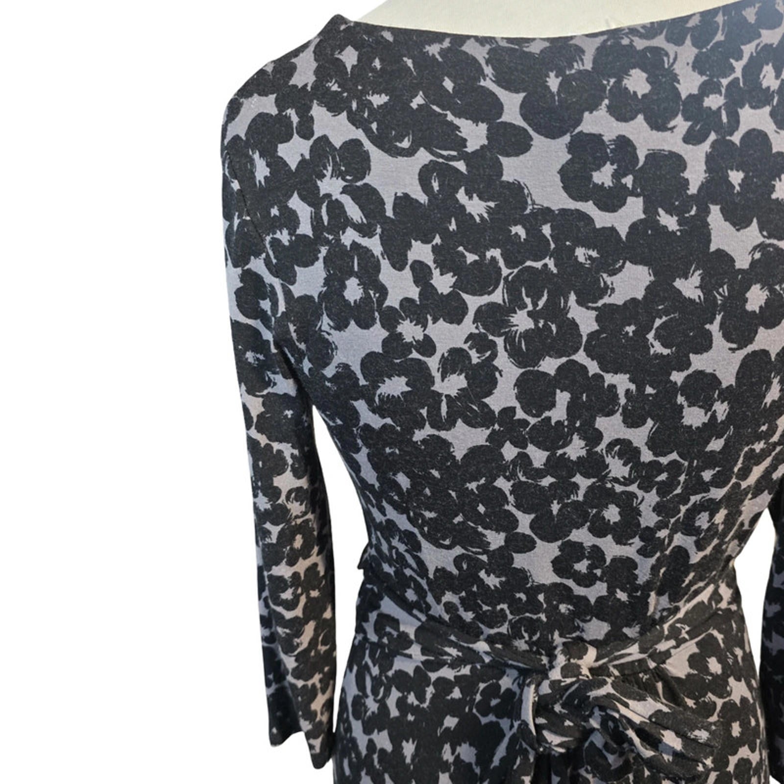 Monsoon Floral Wrap Midi Dress Black & Grey Size 12 Bodycon Smart Causal