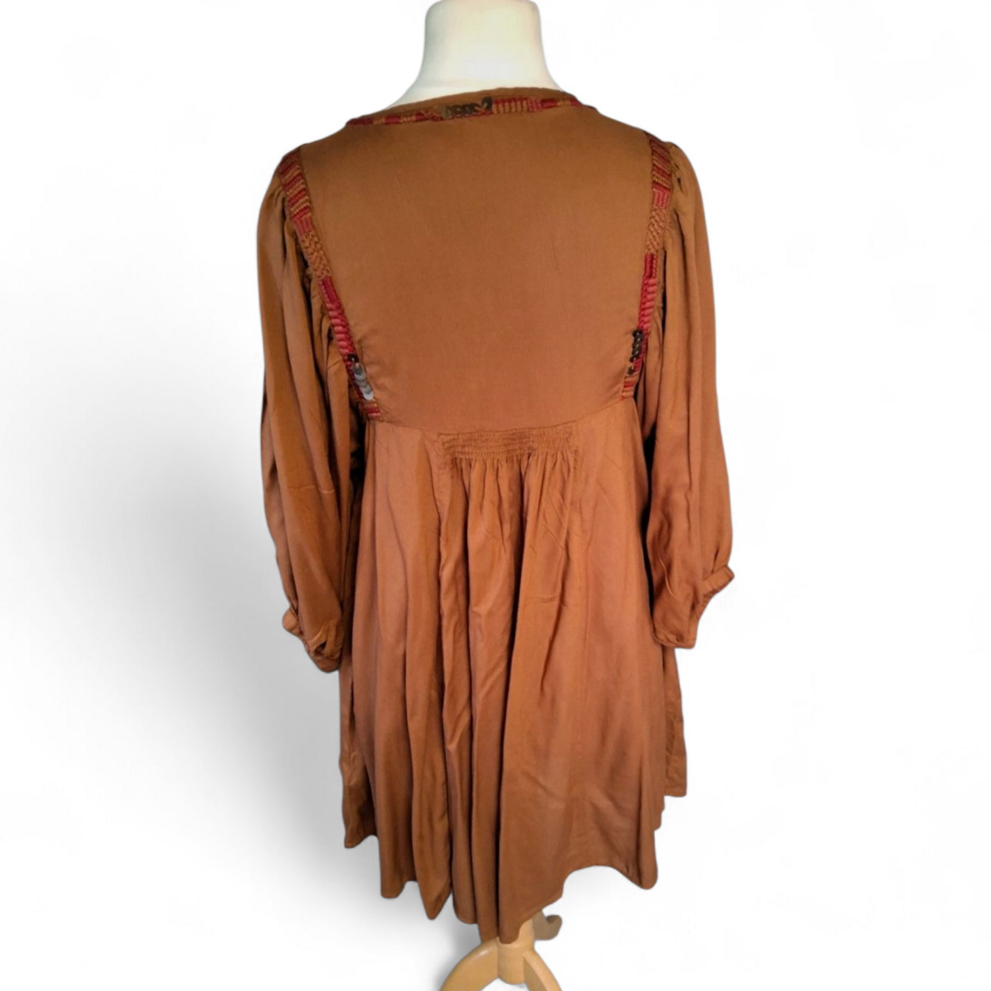 Monsoon Light Brown Embroidered Dress – Size 12 – 100% Viscose