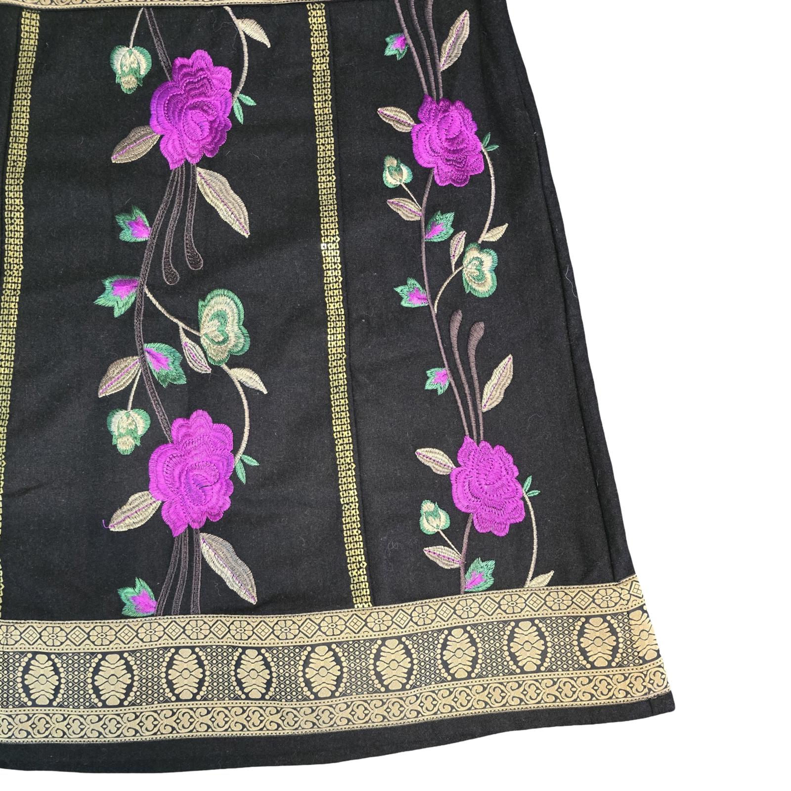 Monsoon Skirt Black, Gold, Purple Size 14 Embroidered Floral Knee Length