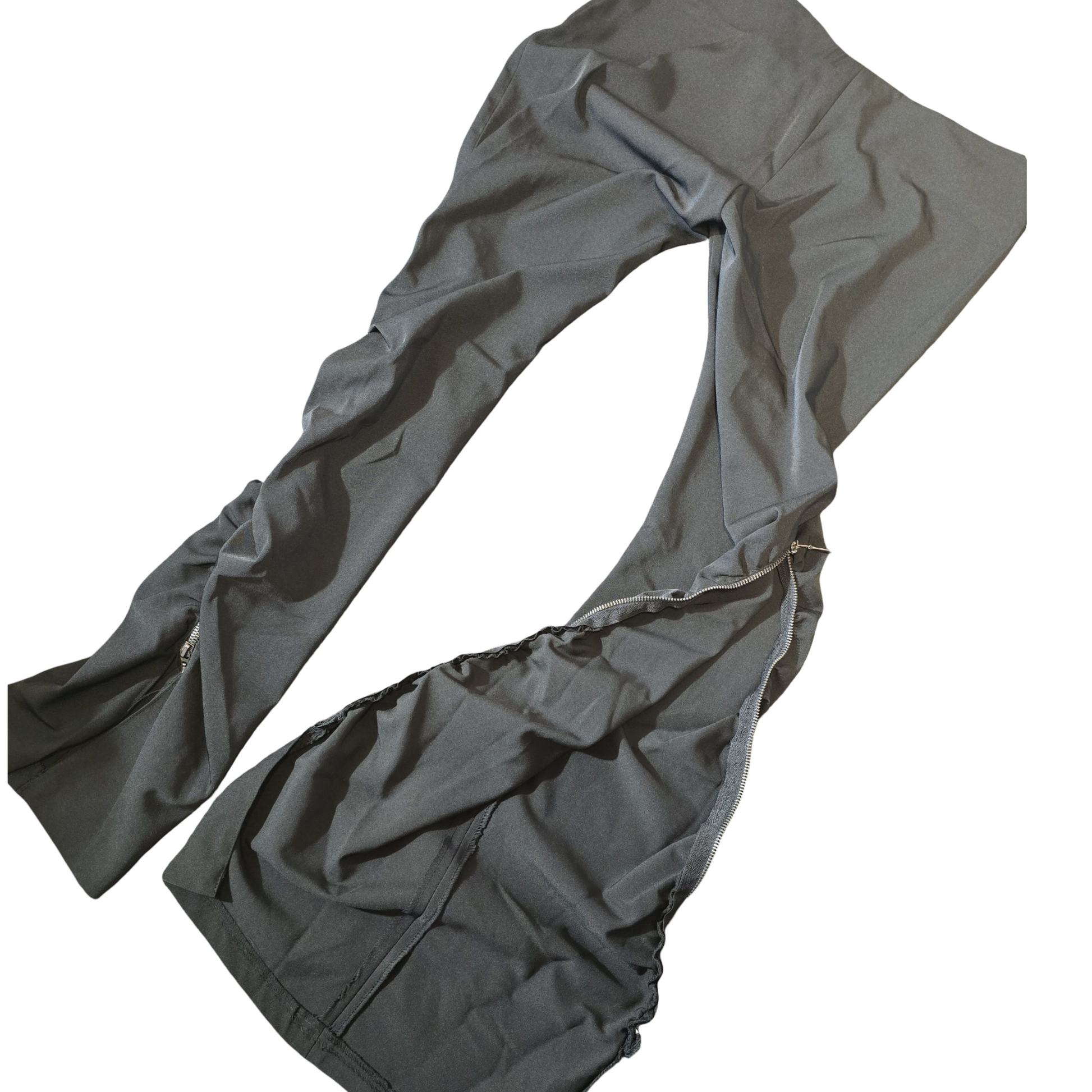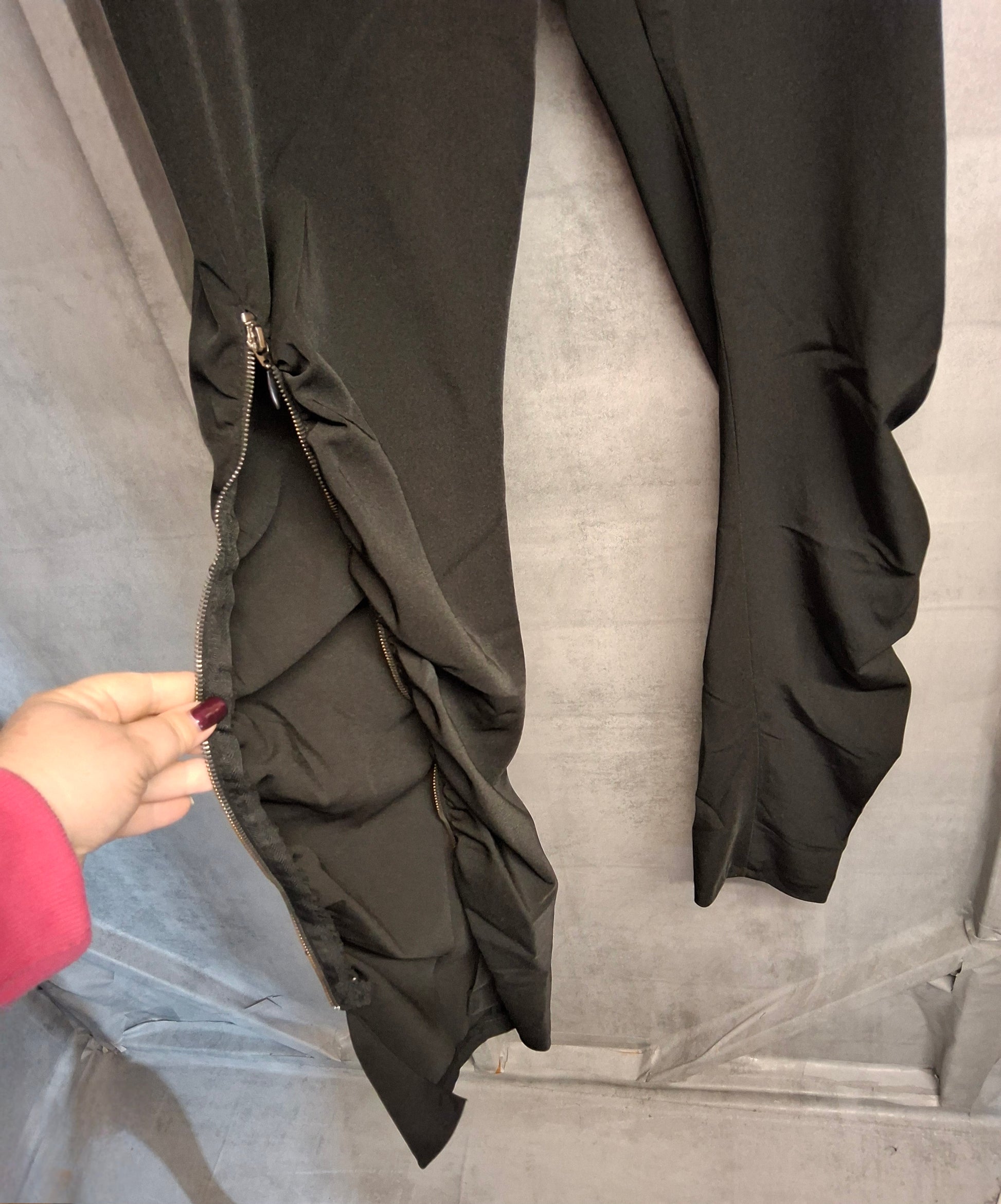 Total Y2K vibes ⨠These Morgan black high-waist trousers bring all the edge with their ruched zip detail that opens up to a flare or stays sleek as a skinny leg when closed. Perfect for nights out or that statement retro look.