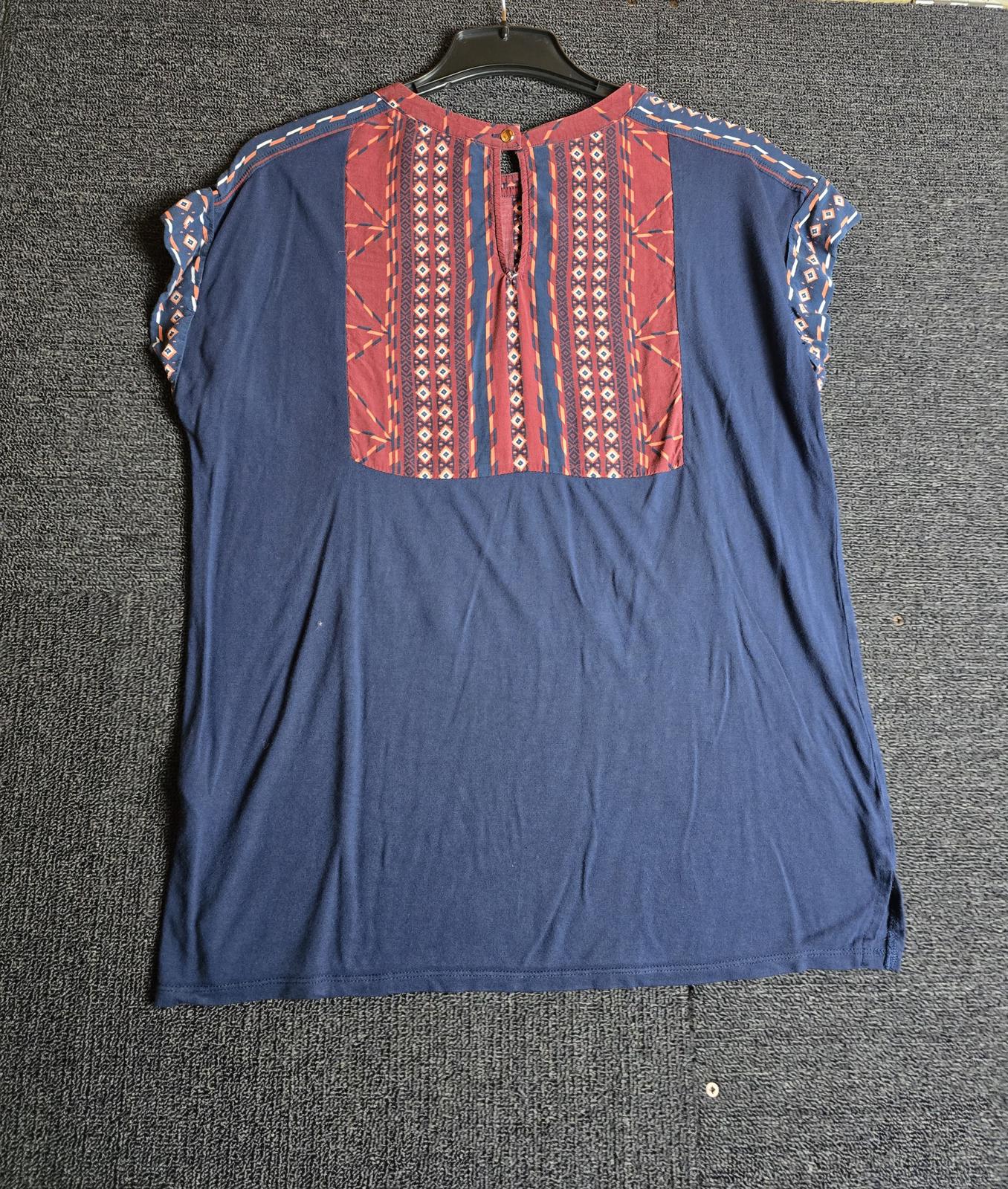 Preloved t-shirt in navy & burgundy, ideal for casual wear.