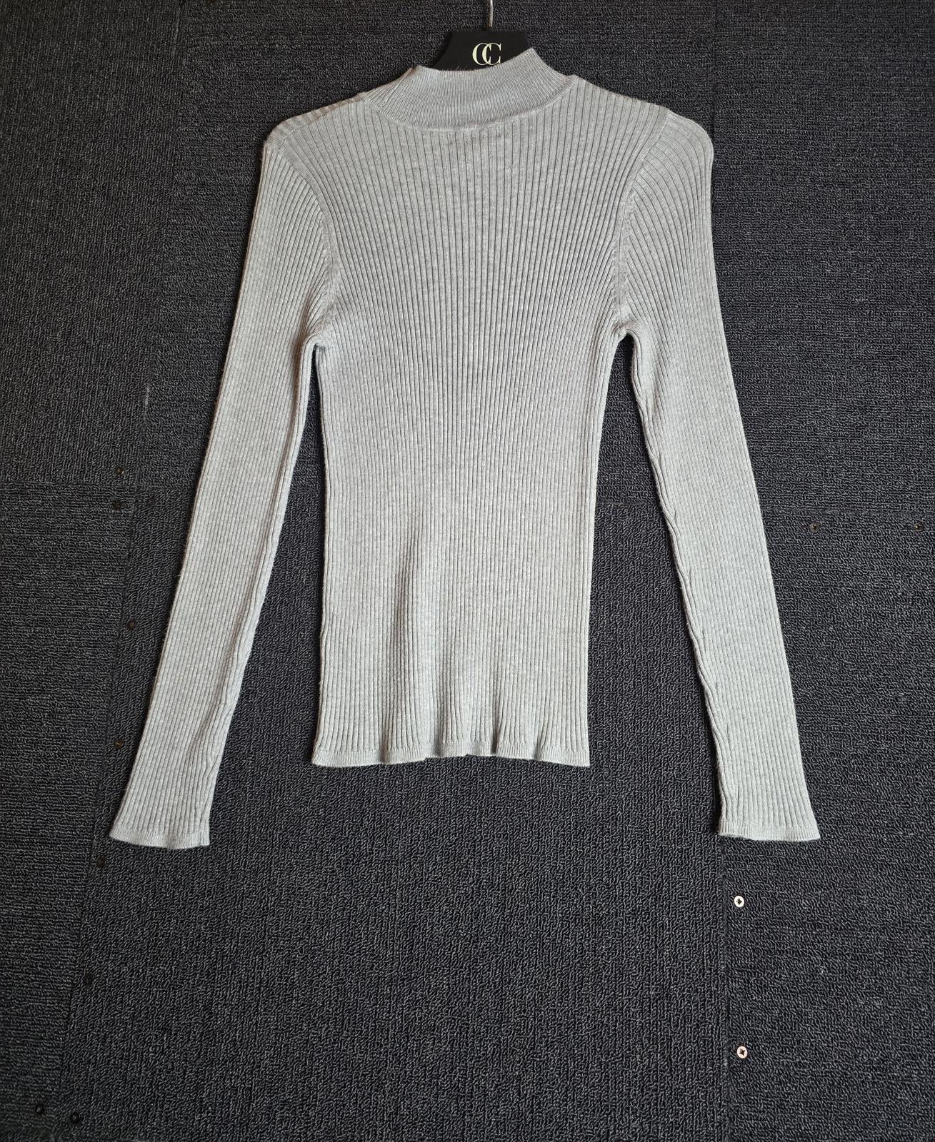 Preloved long-sleeved ribbed top in grey, ideal for everyday, work, casual, or layering wear.