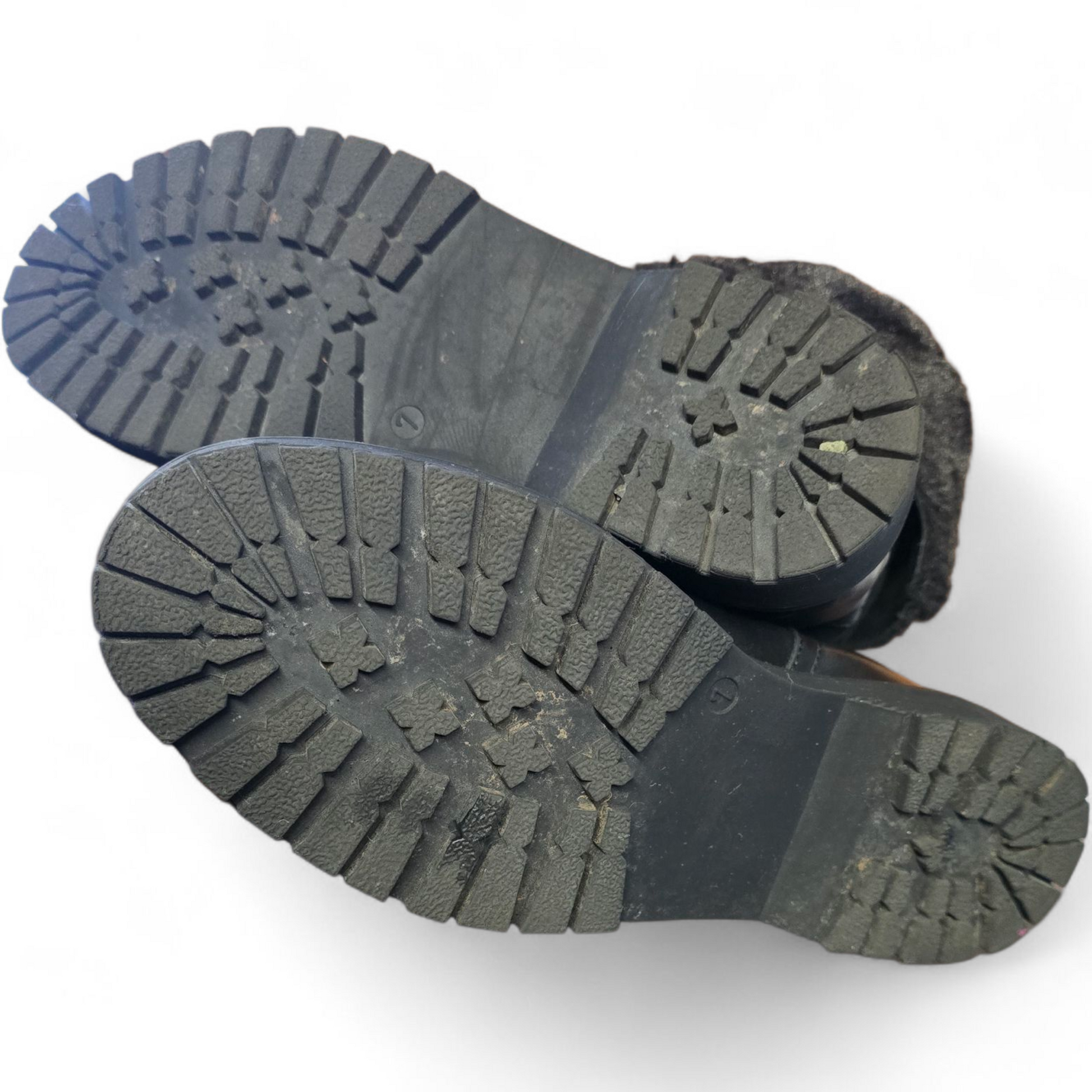 Next Black Faux Fur Ankle Boots – Size 7 – Leather & Suede Mix with Buckle Detail
