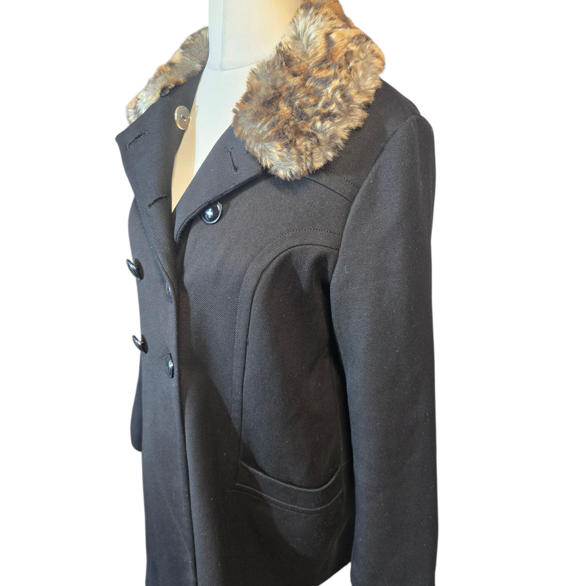 Next Black Midi Coat – Size 14 – Detachable Leopard Faux Fur Collar & Button Up