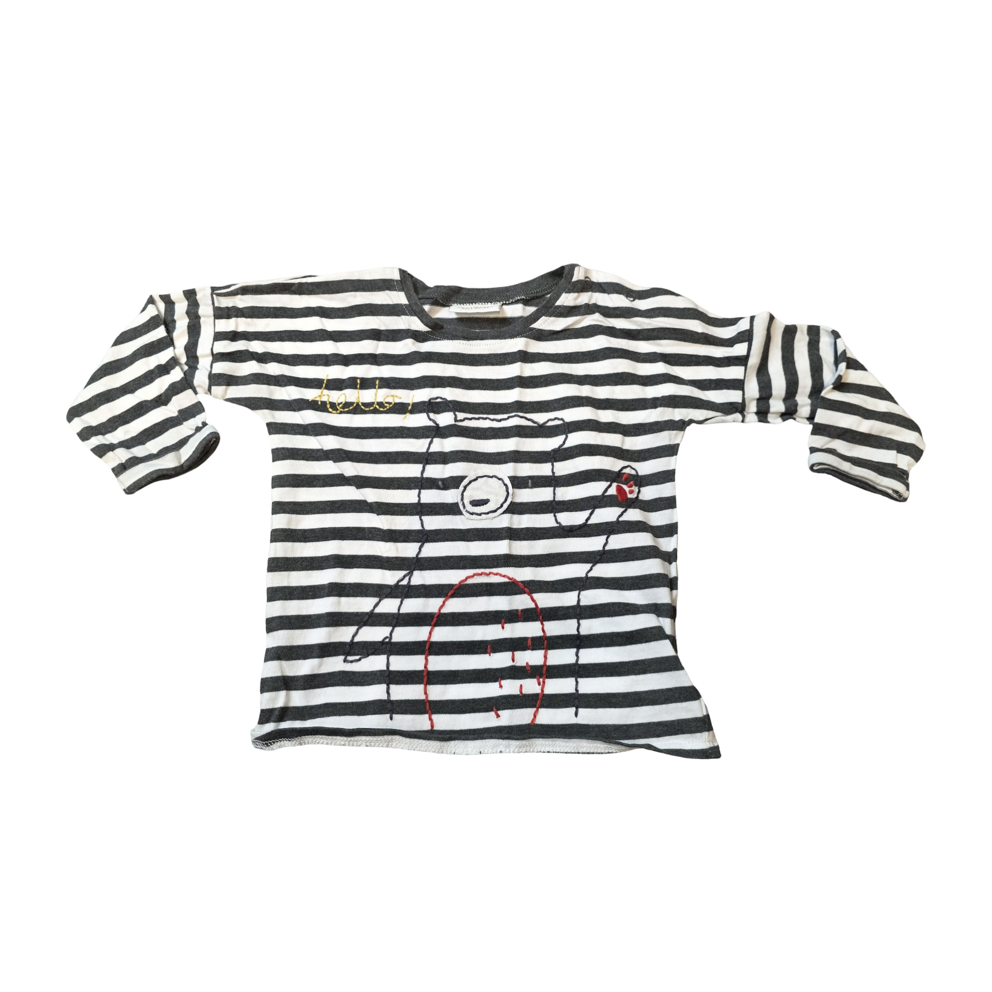 Classic stripes with a playful twist π» This Next boysβ t-shirt features black & white stripes with an embroidered bear and βhelloβ detail. Soft cotton fabric, comfy fit and long sleeves β perfect for everyday wear.