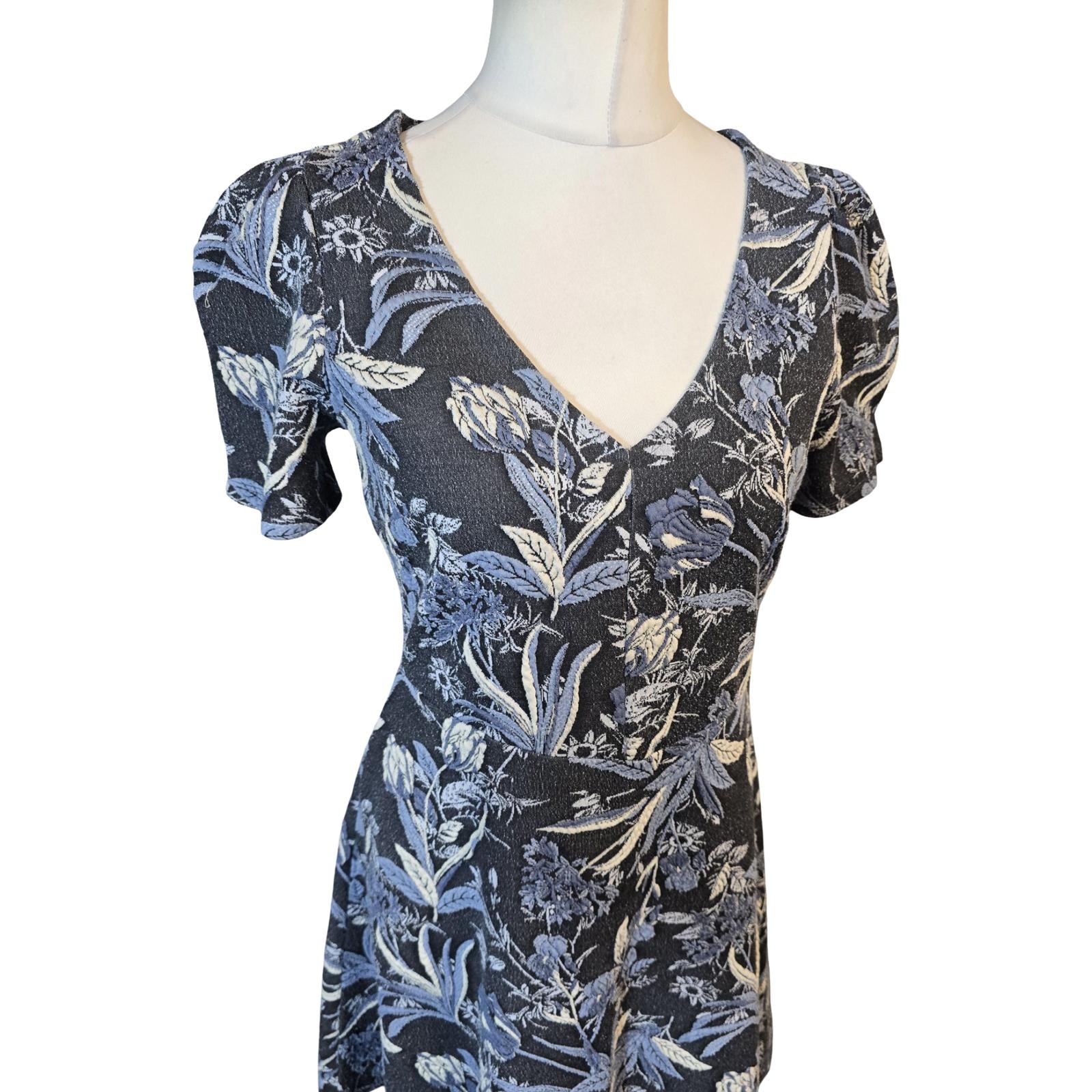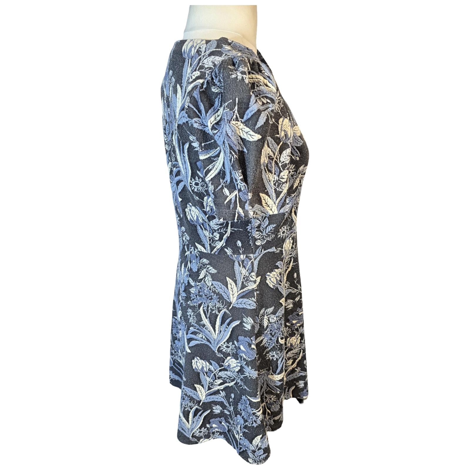 Next Blue & Navy Floral Flared Knee-Length Dress Size 12 Reg Short Sleeve