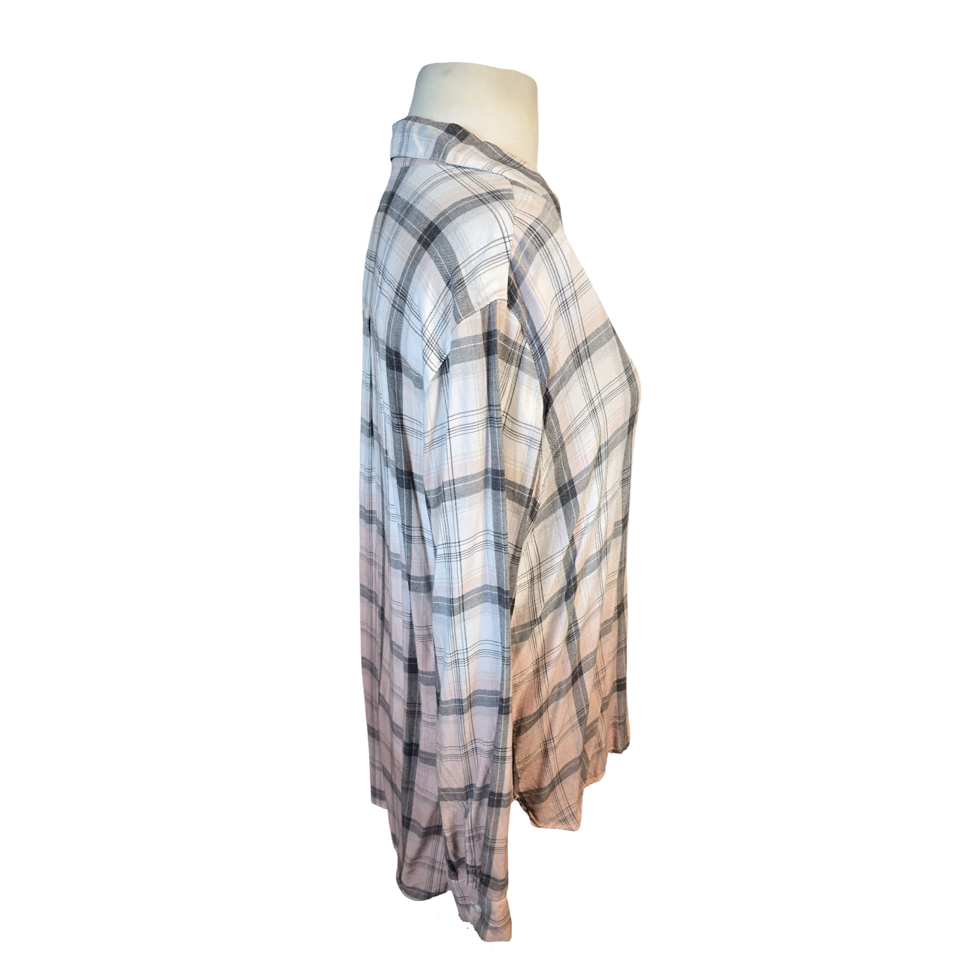 Next Coral & Cream Checked Ombre Oversized Shirt Size 14