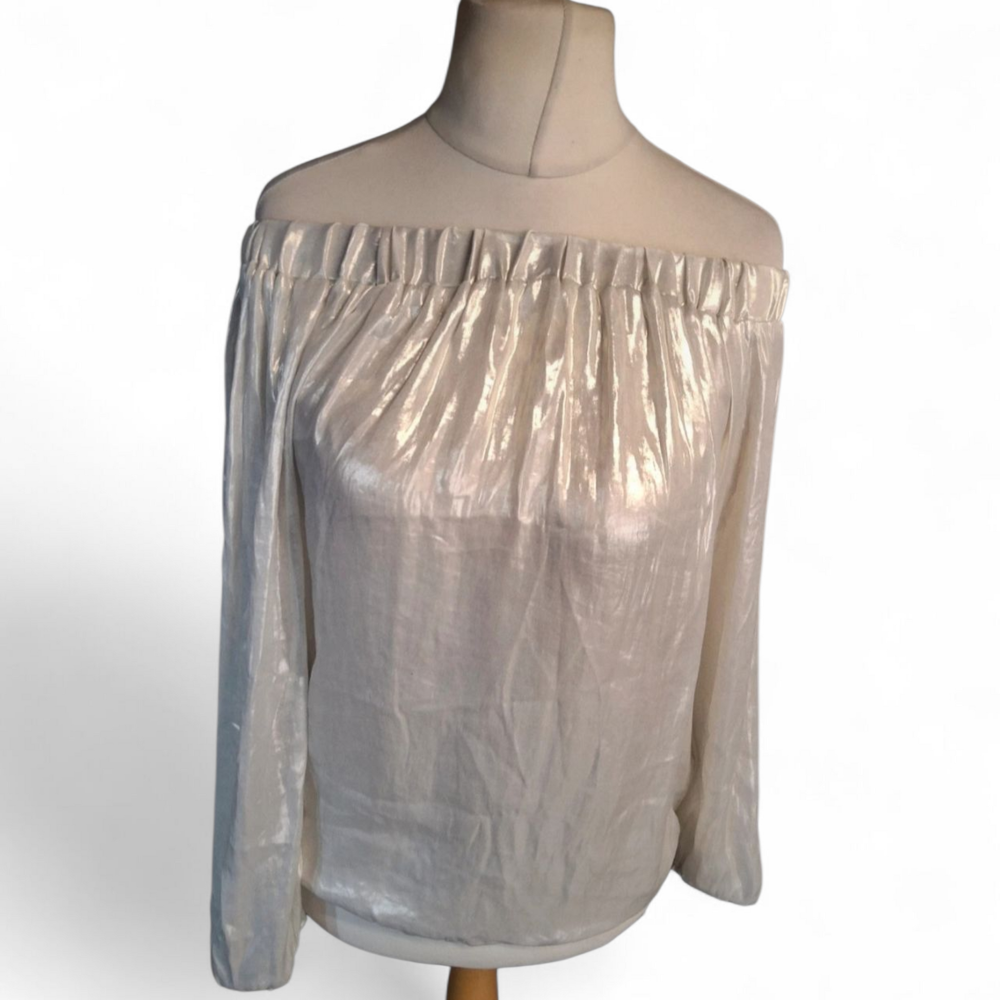 Next Cream Ivory Off-Shoulder Shiny Long Sleeve Top – Size 14