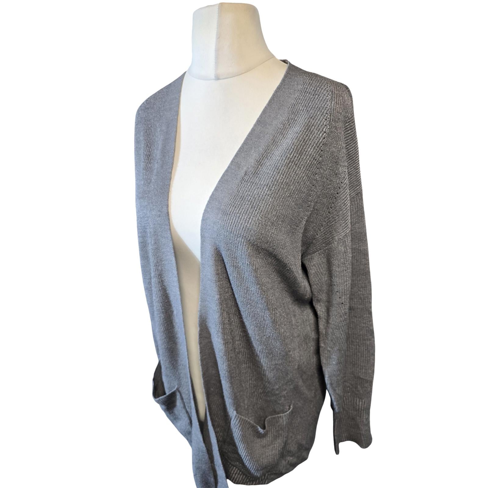 Next Grey Ribbed Open-Front Cardigan Long Sleeve Size 12/14