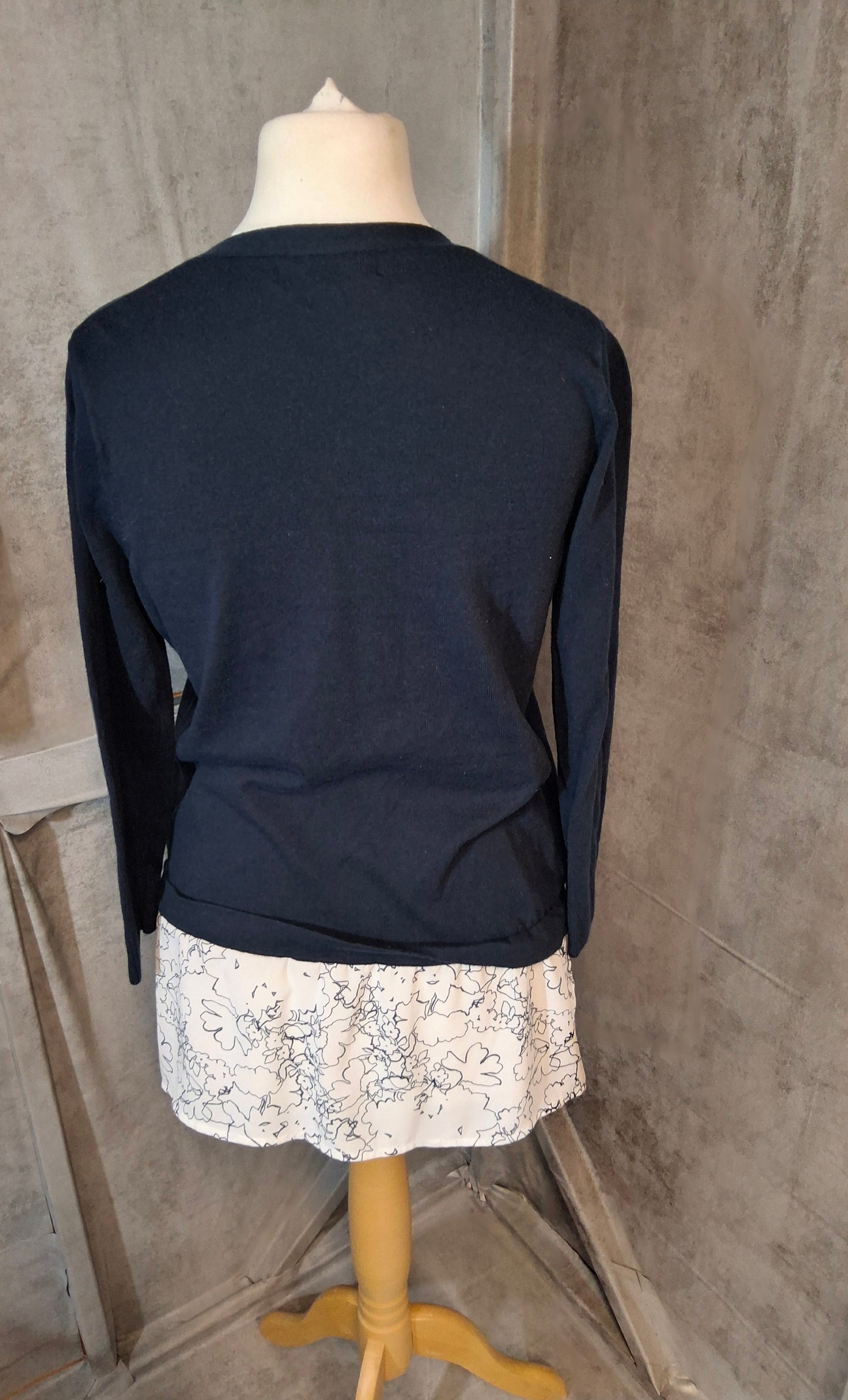 Next Navy & White 2-in-1 Top with Cardigan – Size 10 – Cotton Blend