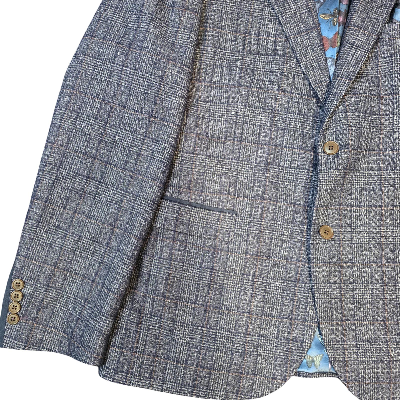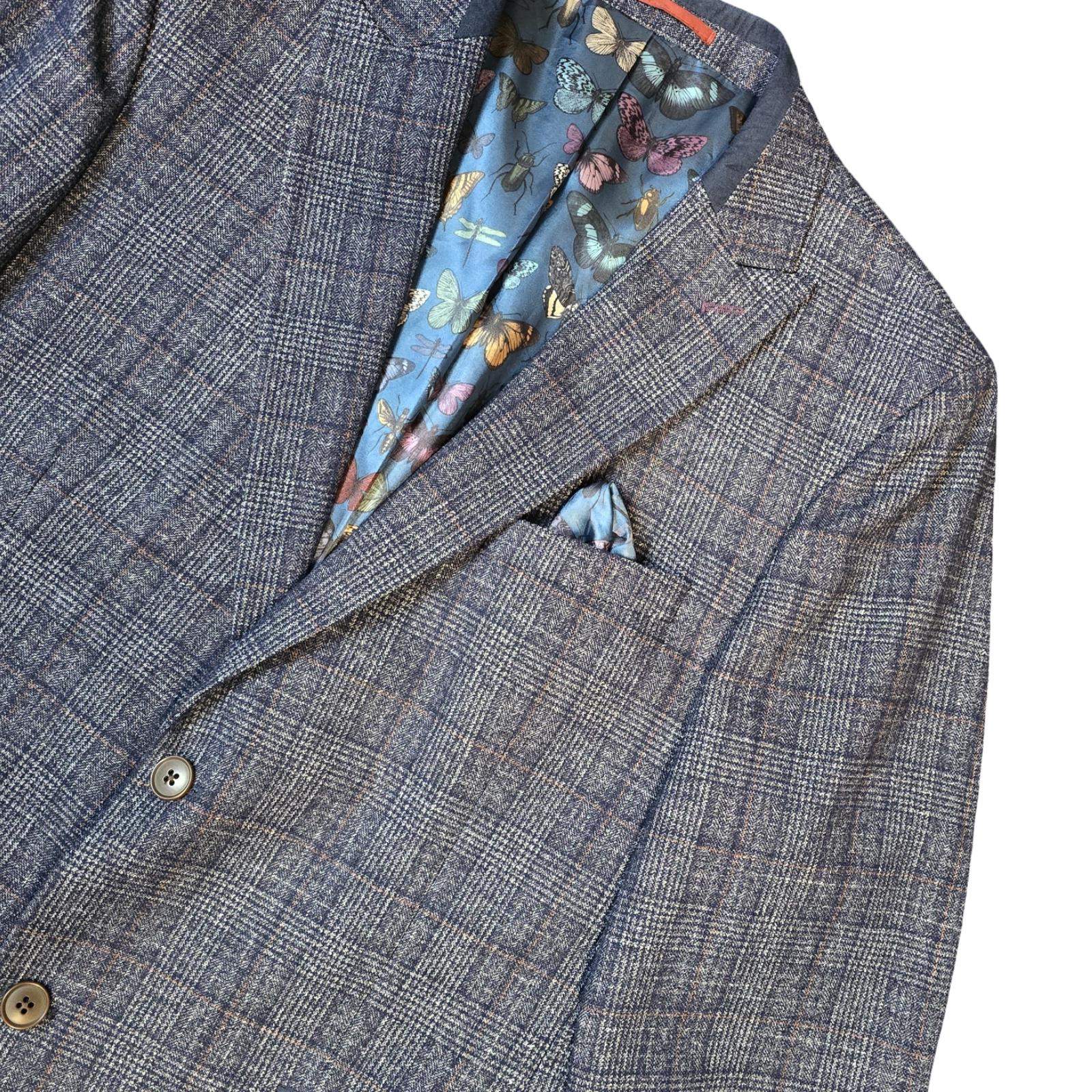 Style / Fit: Tailored fit, 2 button close, checked, silky lined with butterfly design, pockets