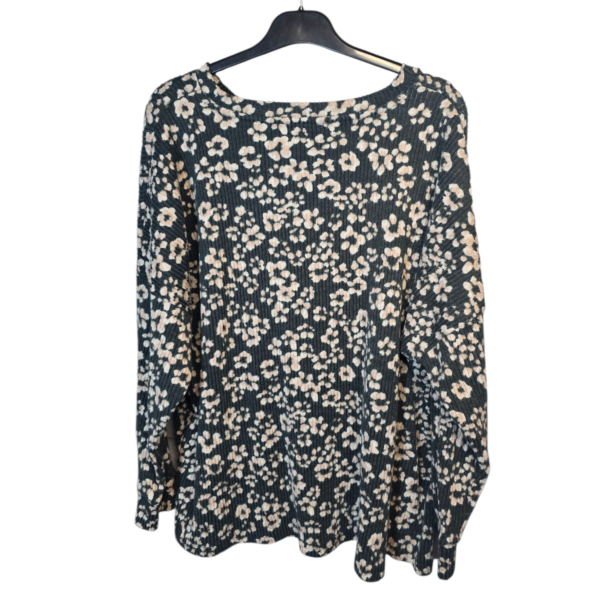Nutmeg Green & Pale Pink Floral Ribbed Fleeced Jumper – Size 22 – Cosy & Relaxed