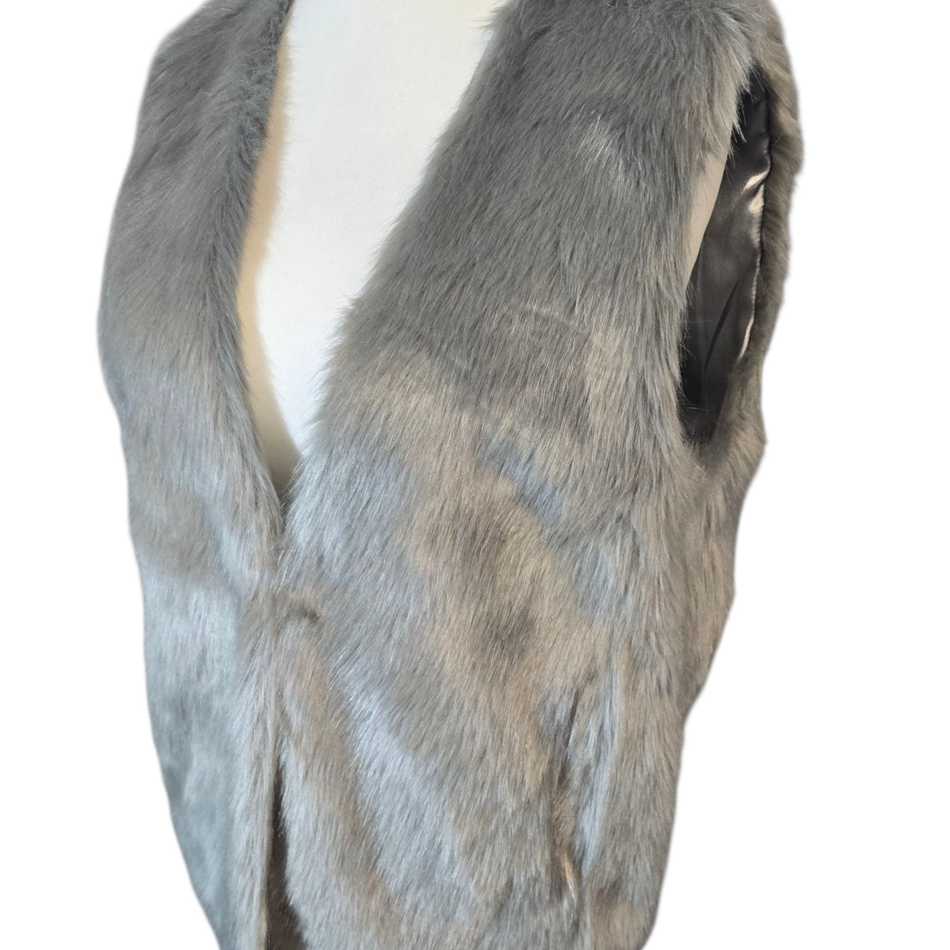 Oasis Grey Faux Fur Gilet – Size L (Size 12/14) – Soft Faux Fur Waistcoat with Pockets