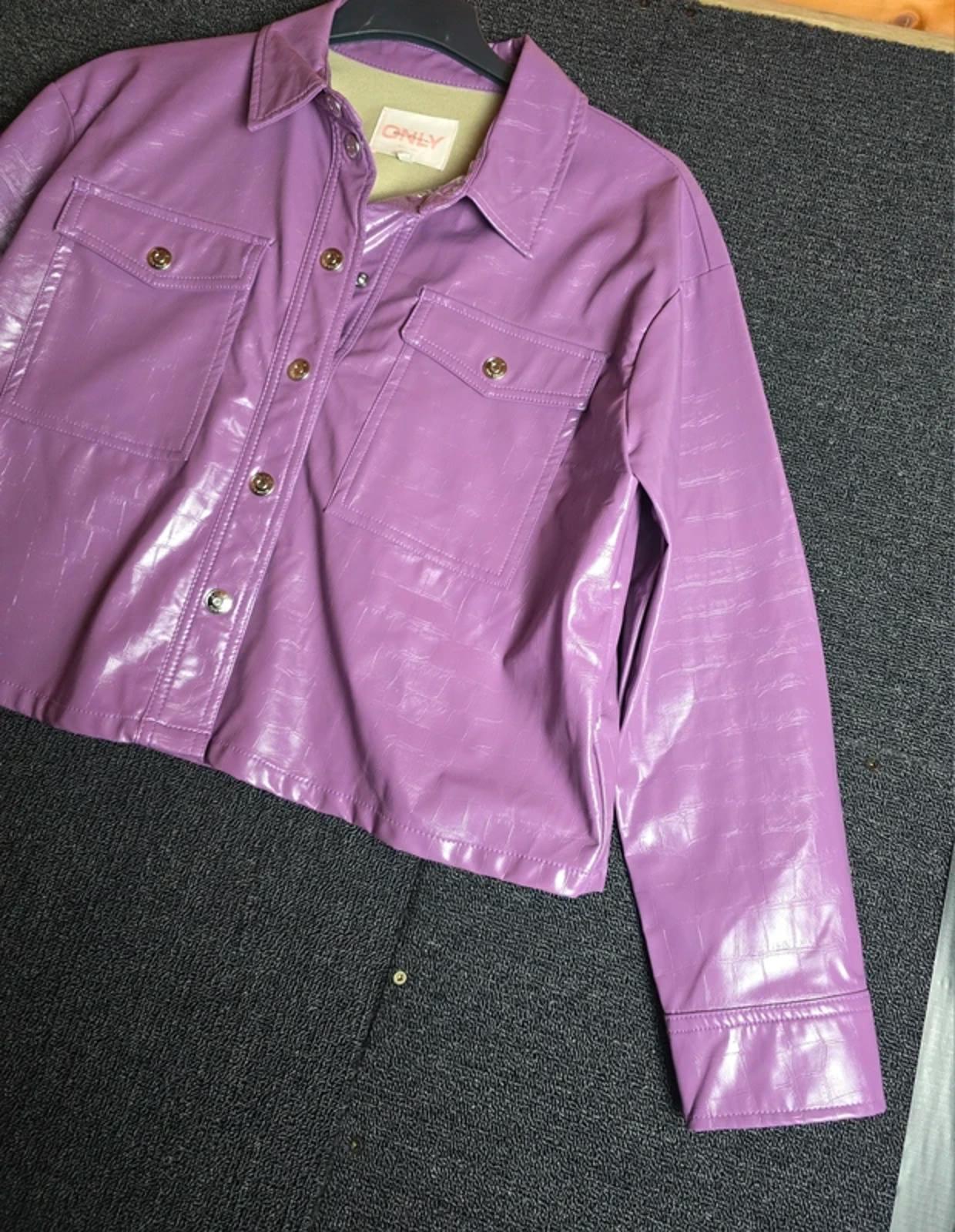 ONLY Faux Leather Jacket Lilac M Size 12-14 Boxy Cropped Fit Causal