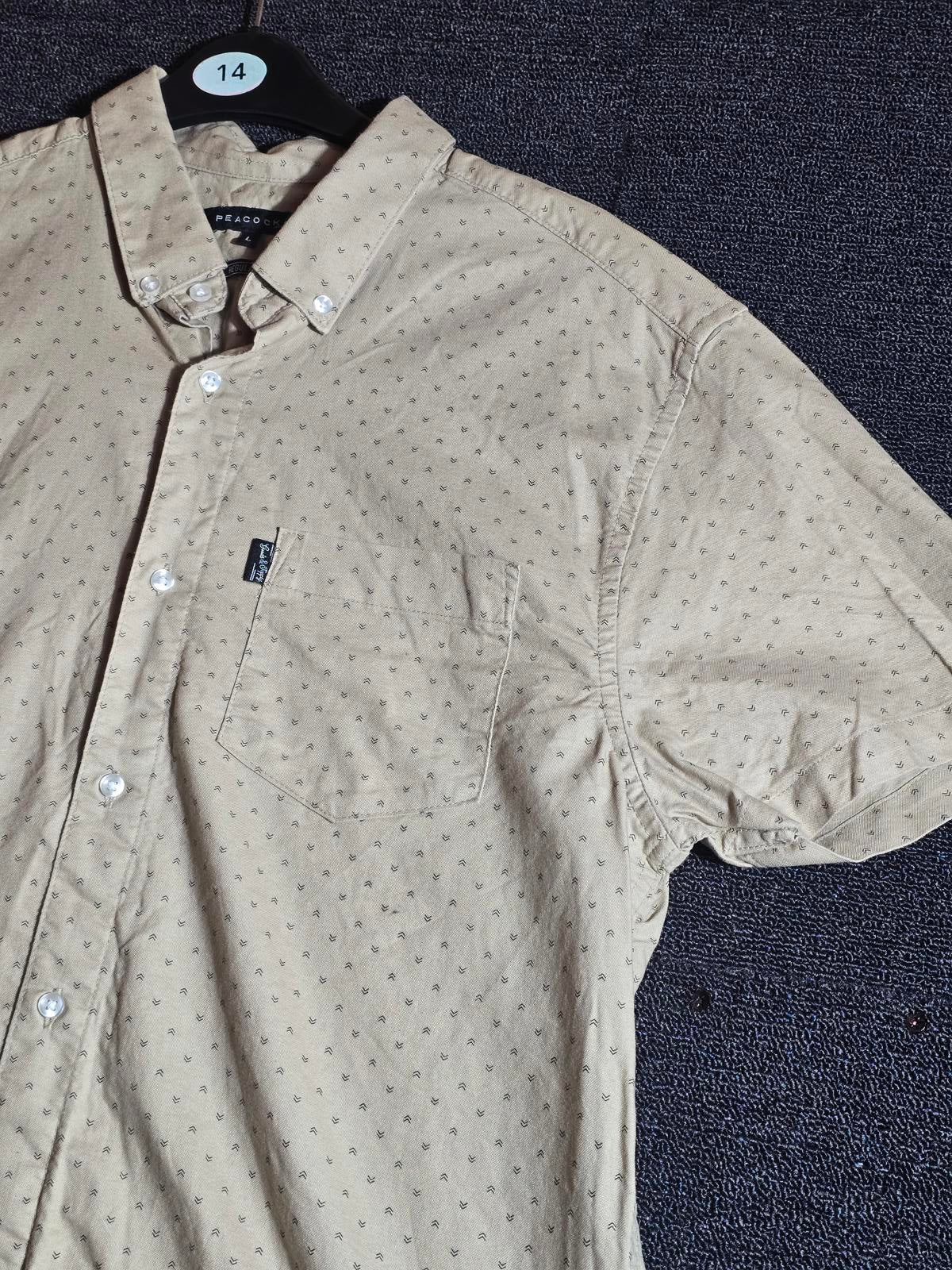 Peacocks Men’s Beige Short Sleeve Shirt Size L Button Down Cotton Regular Fit