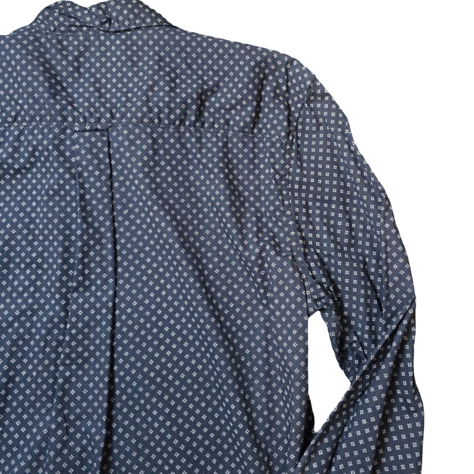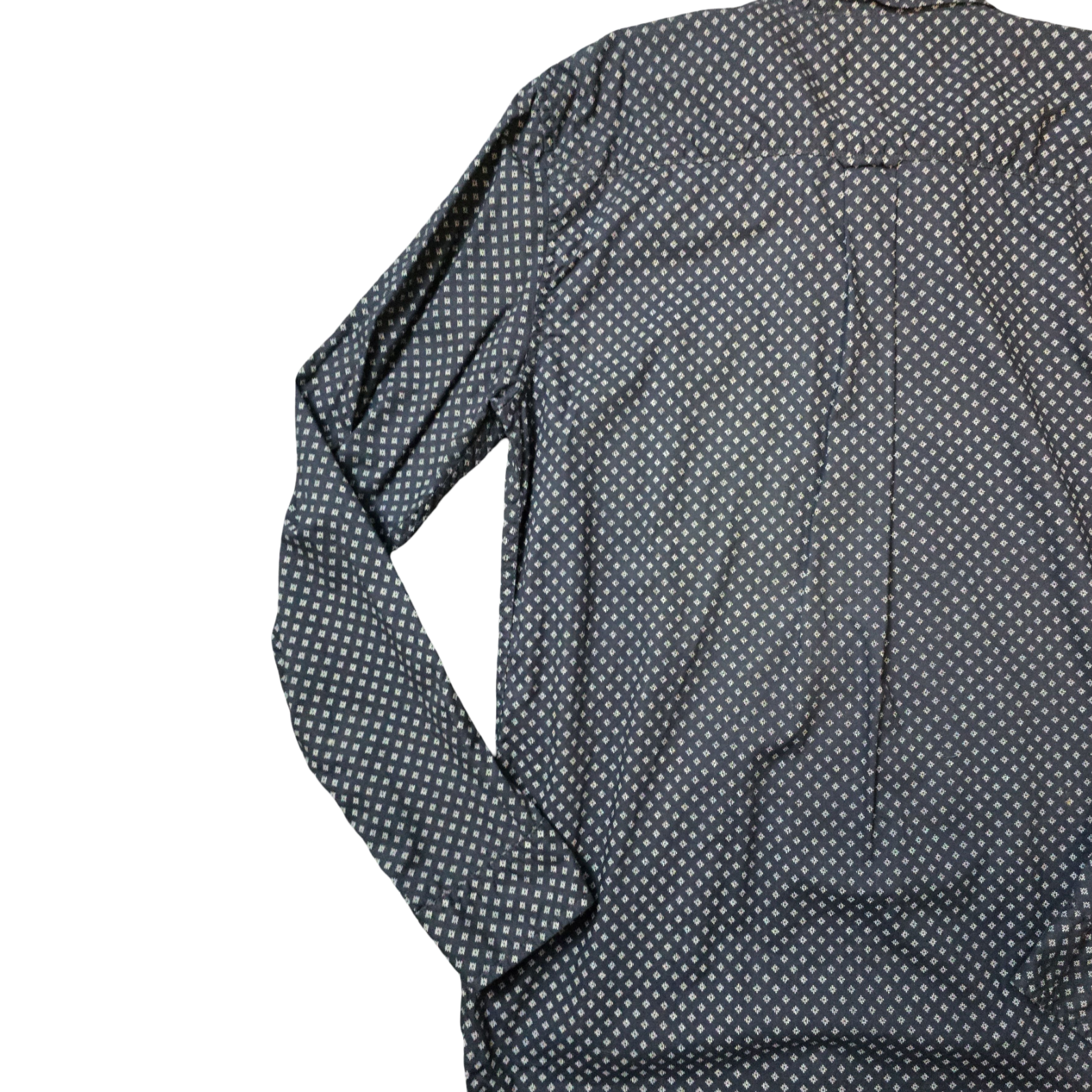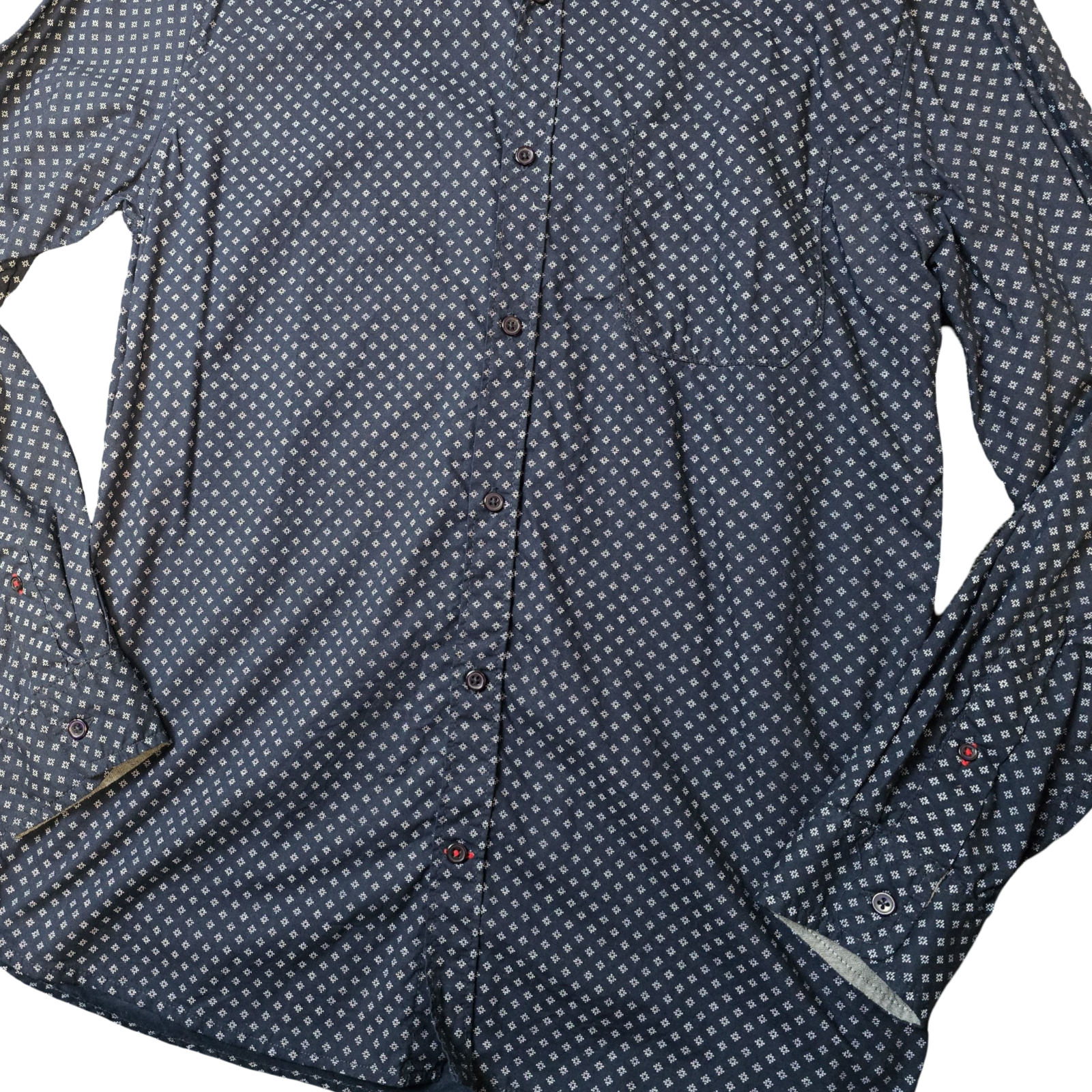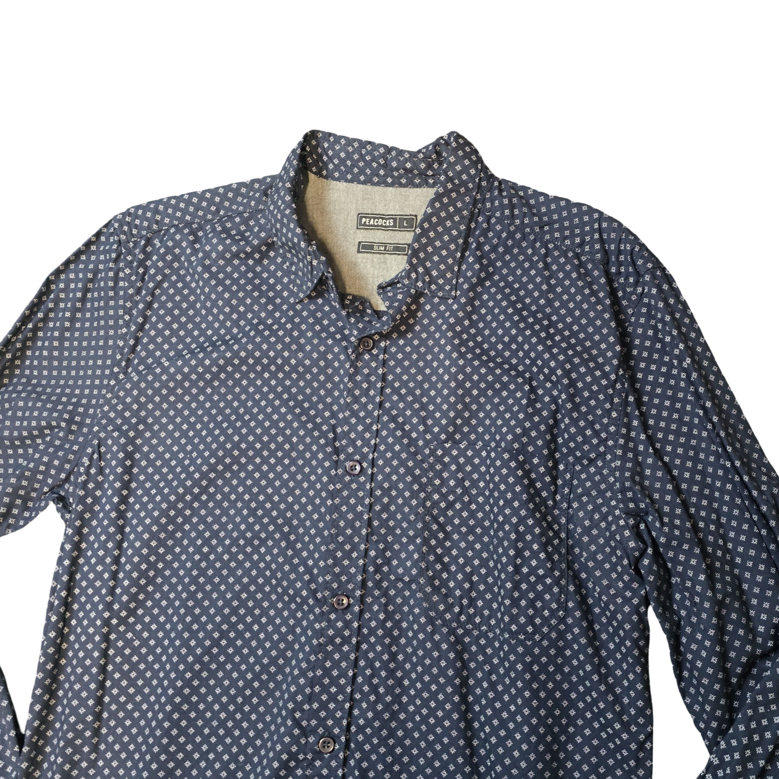 Smart yet easy-going, this Peacocks slim fit shirt comes in a classic navy base with a white geometric pattern. Made from 100% cotton, it’s breathable, comfortable, and versatile – ideal for work, nights out, or casual layering.