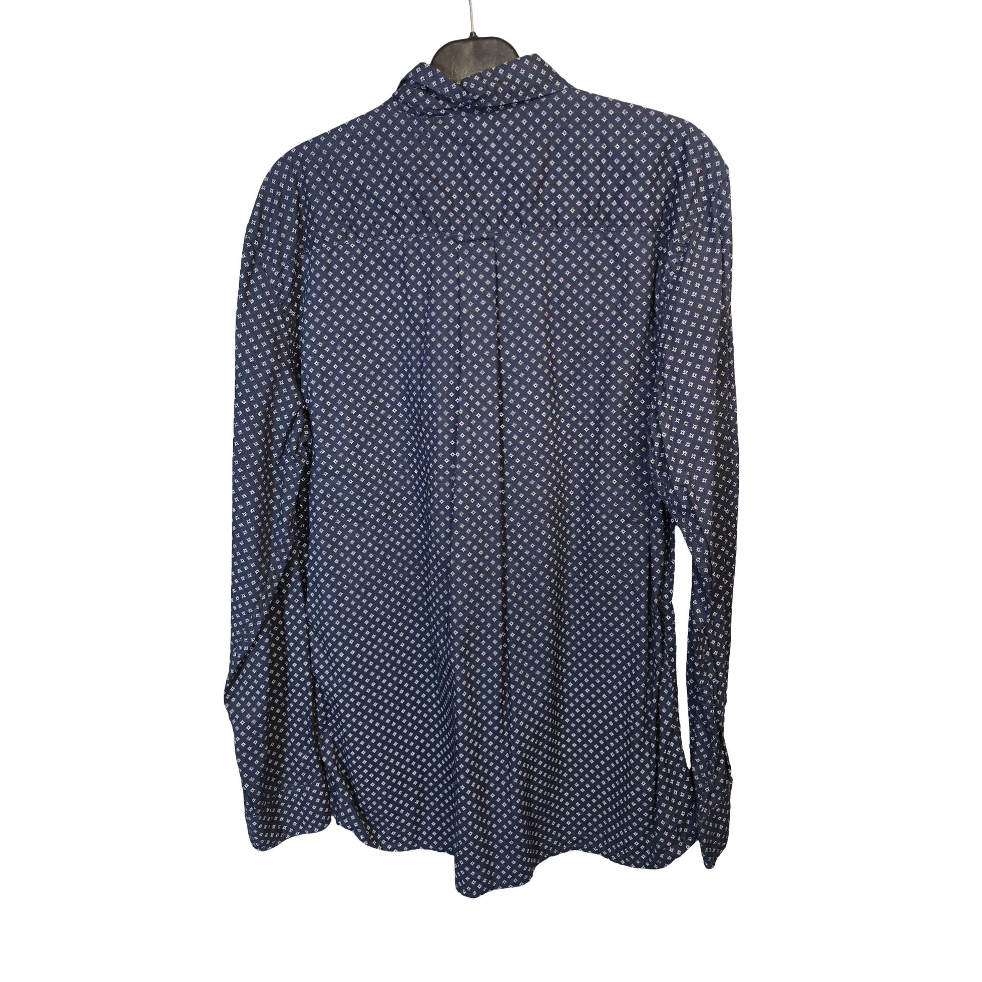 Peacocks Navy & White Patterned Slim Fit Shirt – Men’s Size L – 100% Cotton