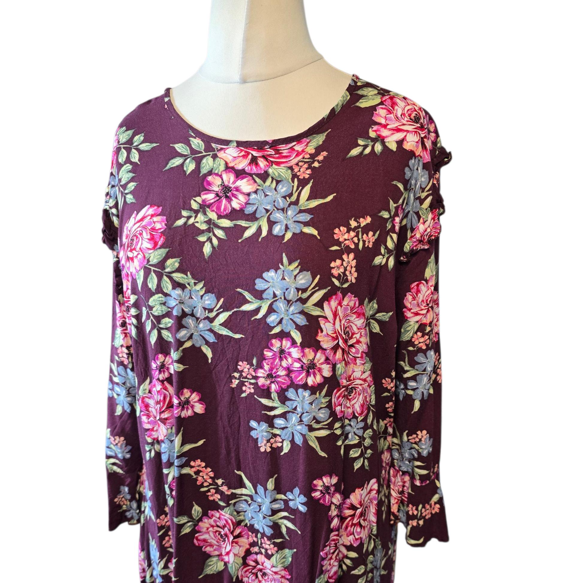 Peacocks Purple Floral Knee-Length Dress – Size 20