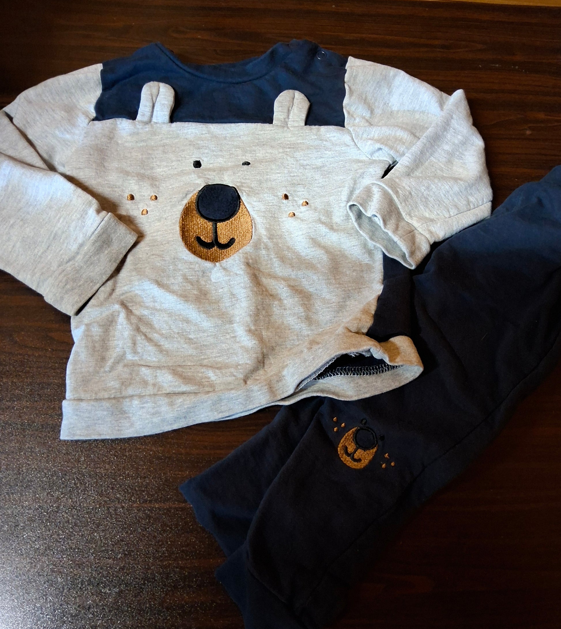Cosy and cute! This Pep & Co two-piece set includes a soft grey jumper with an embroidered bear face and little 3D ears š» plus matching navy joggers with a bear detail on the leg. Perfect for playtime, nursery, or snuggly days at home.