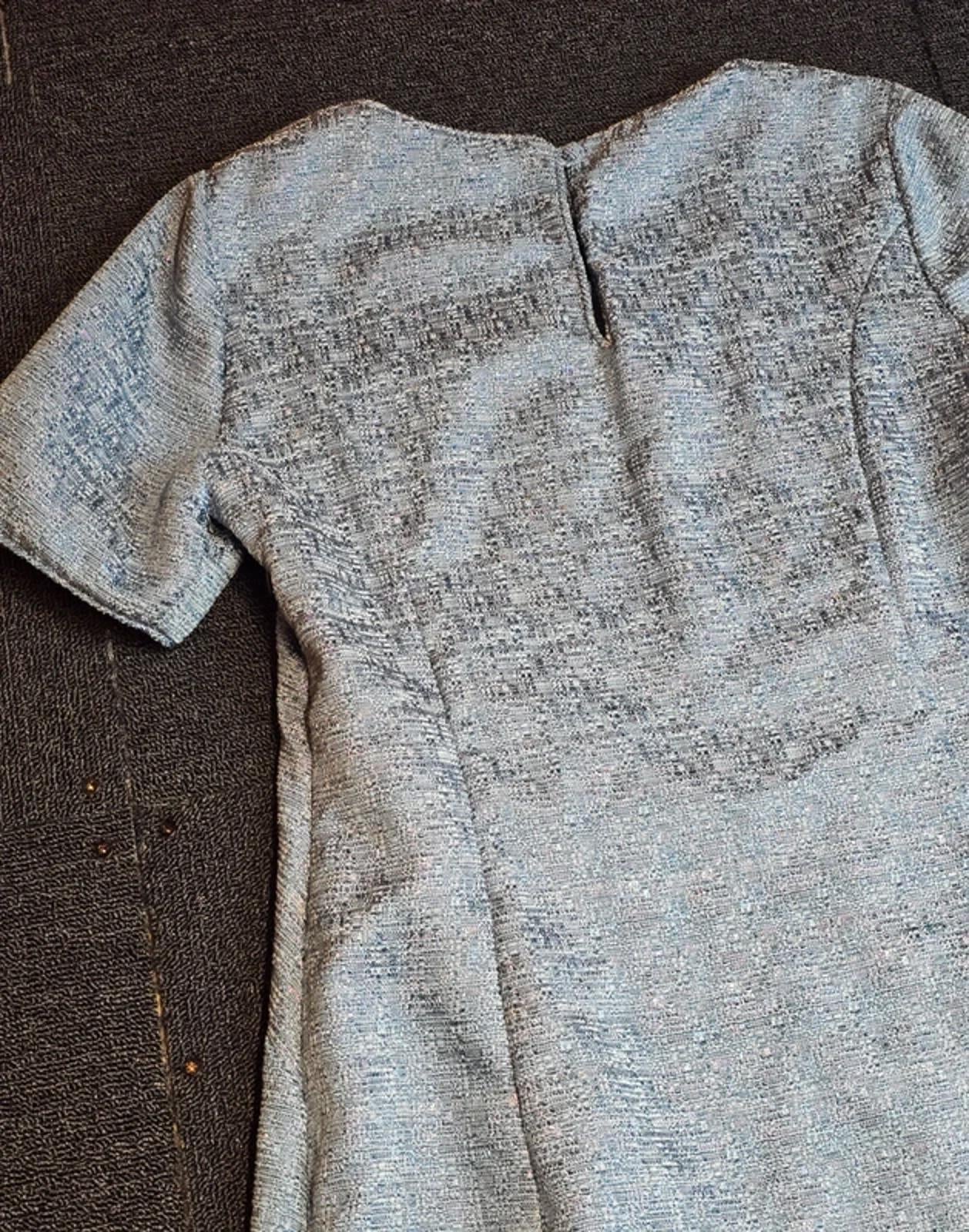 Preloved fit & flare dress in icy blue with a subtle sparkle, ideal for work, occasions or smart everyday wear.