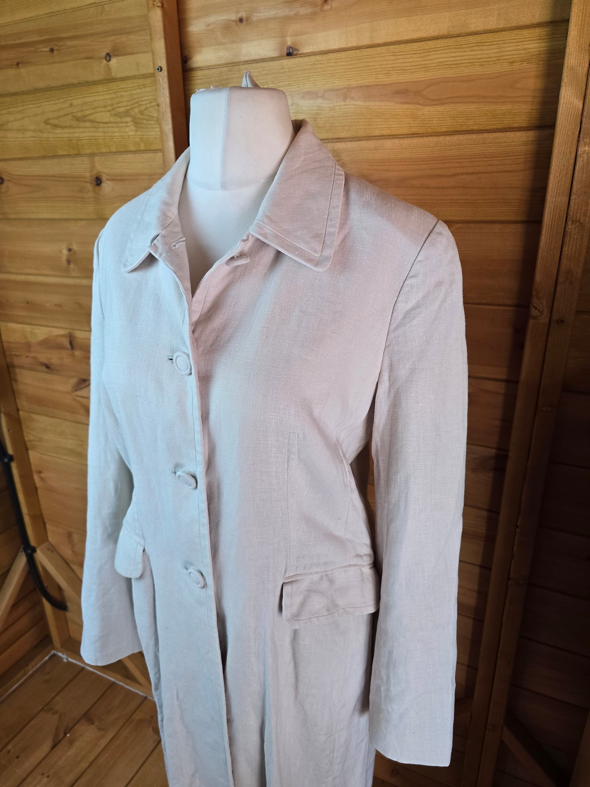 Per Una Cream 100% Linen Midi Jacket – Size 14
