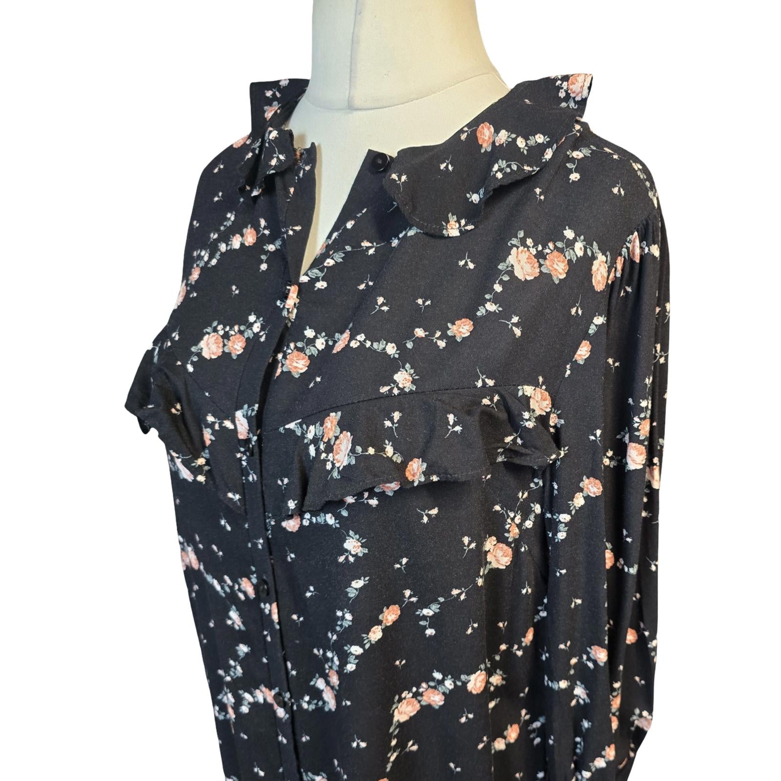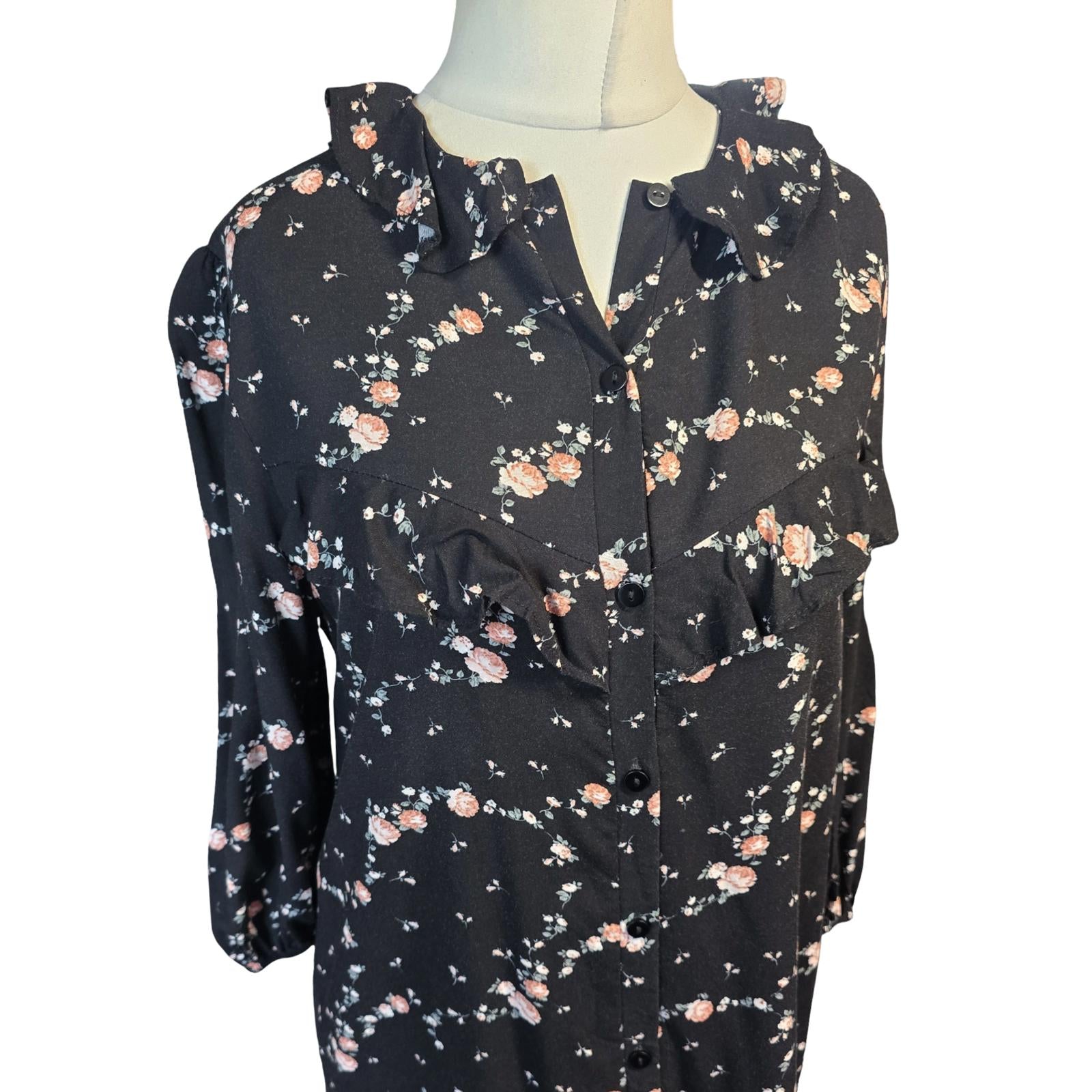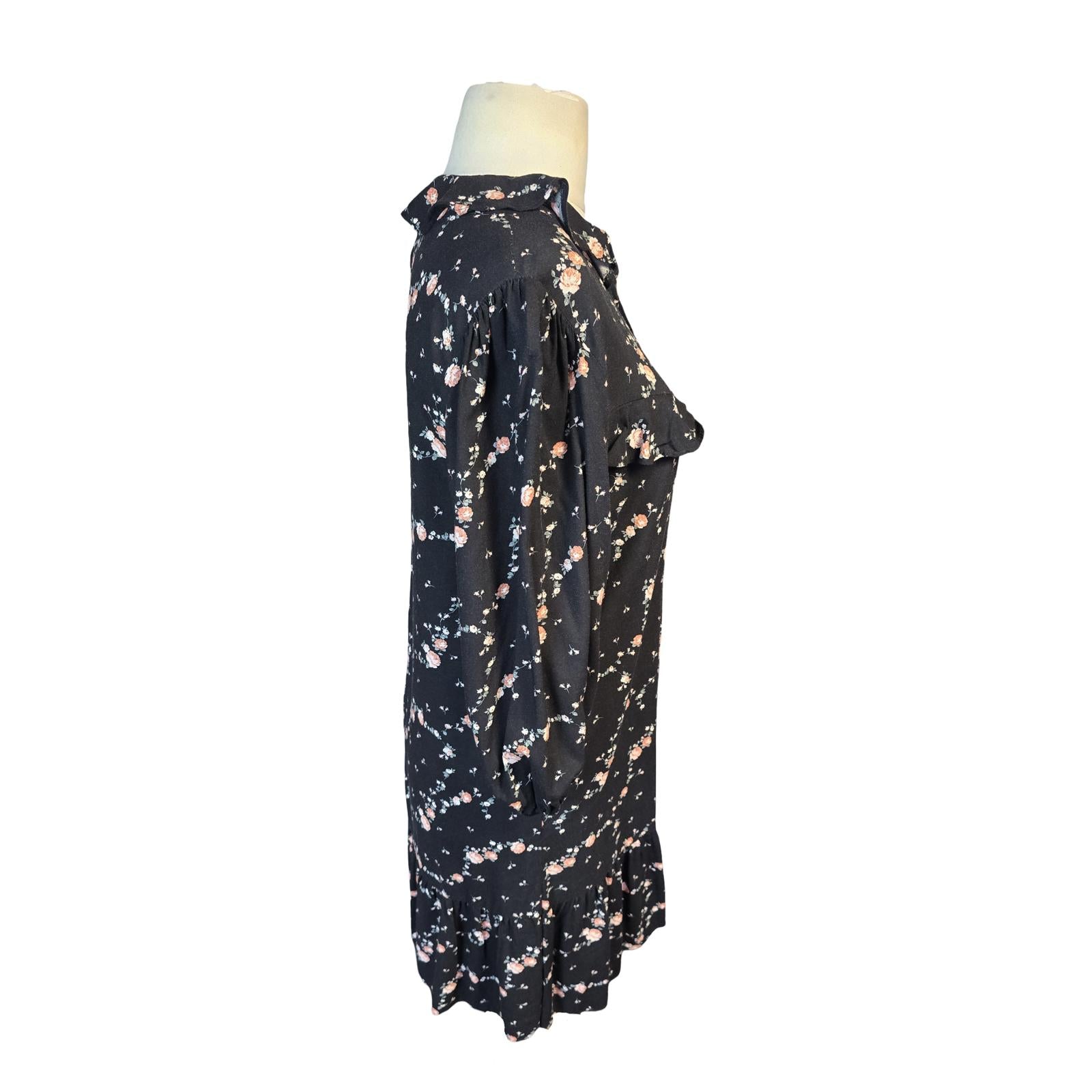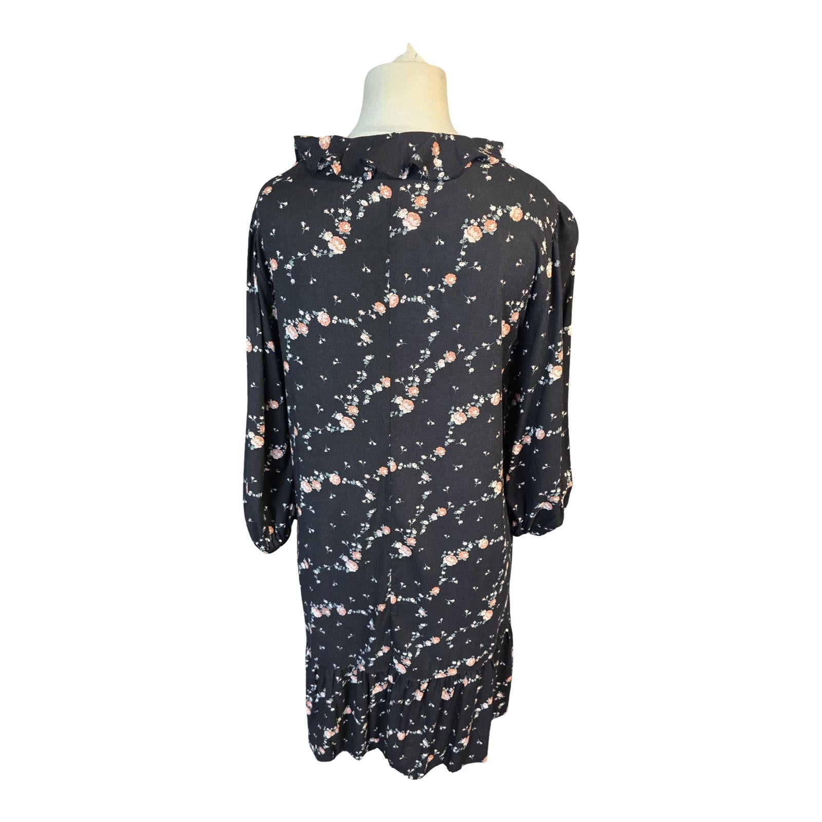 Primark Black Floral Frill Collar Dress Size 10