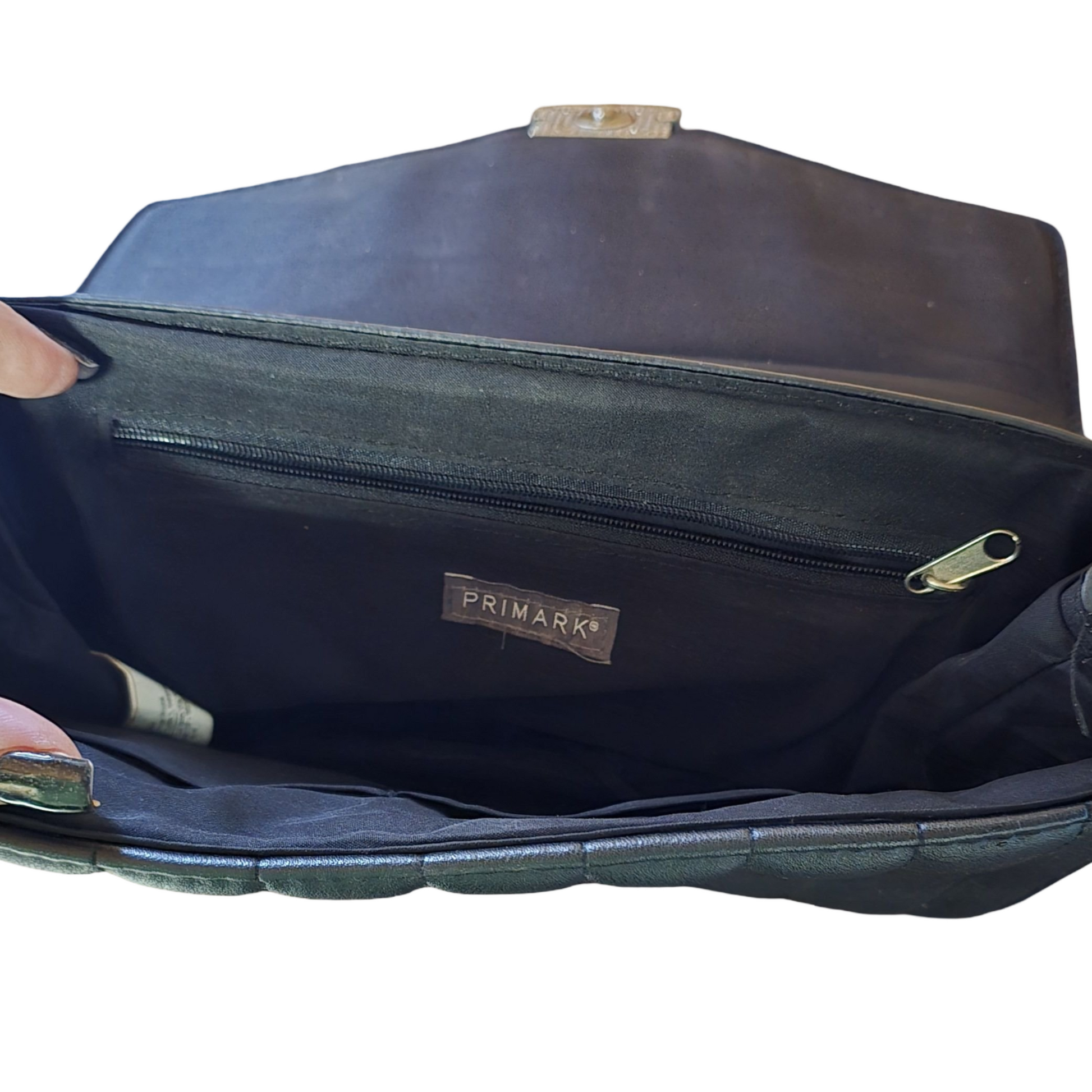 Primark Black Quilted Chain Bag – Popper Close & Dual Strap