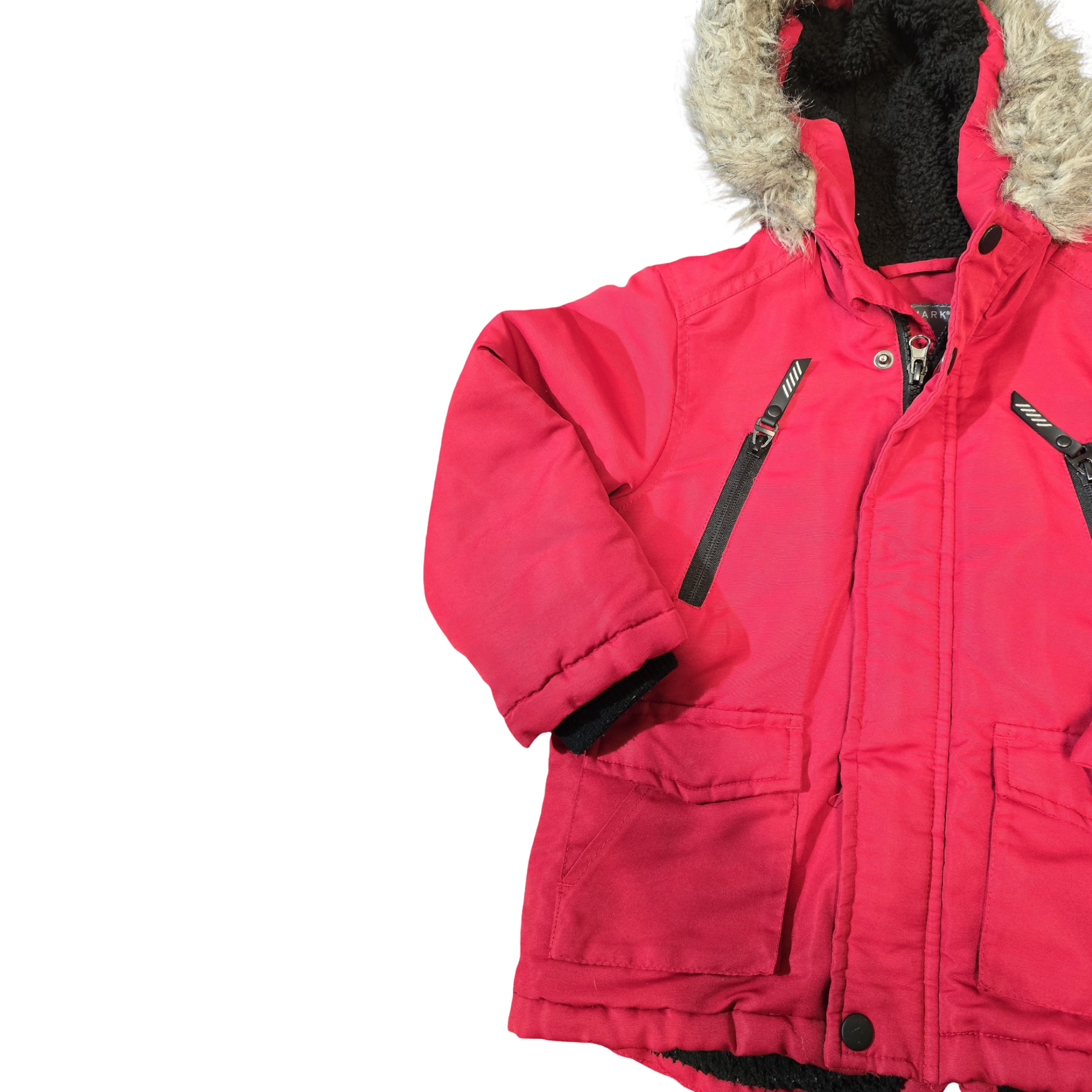 Primark Boys Red Winter Coat – Fleece Lined Hood – Age 3-4 Years