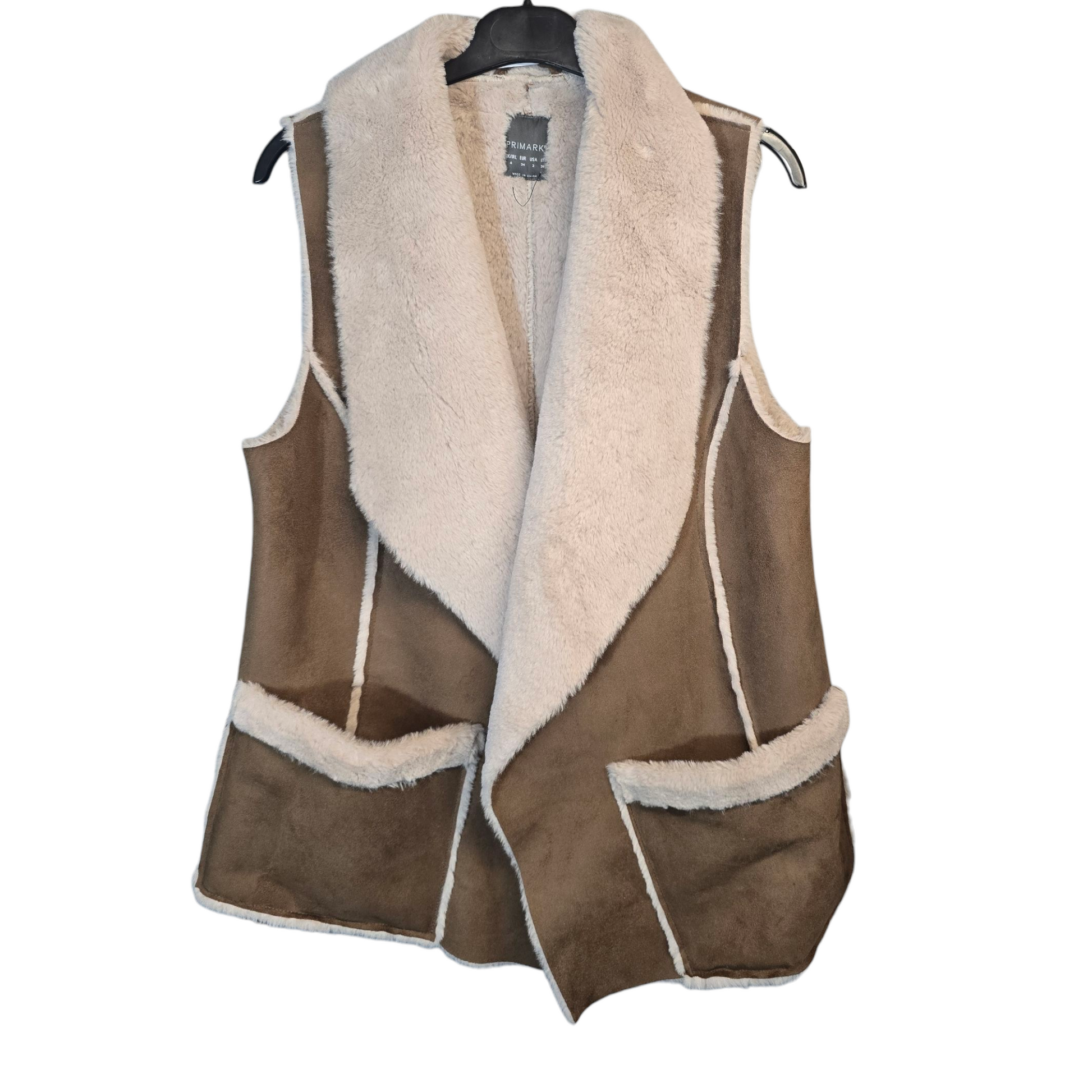 Primark Brown & Cream Fleece-Lined Sleeveless Gilet – Size 6 (Oversized Fit to 8)