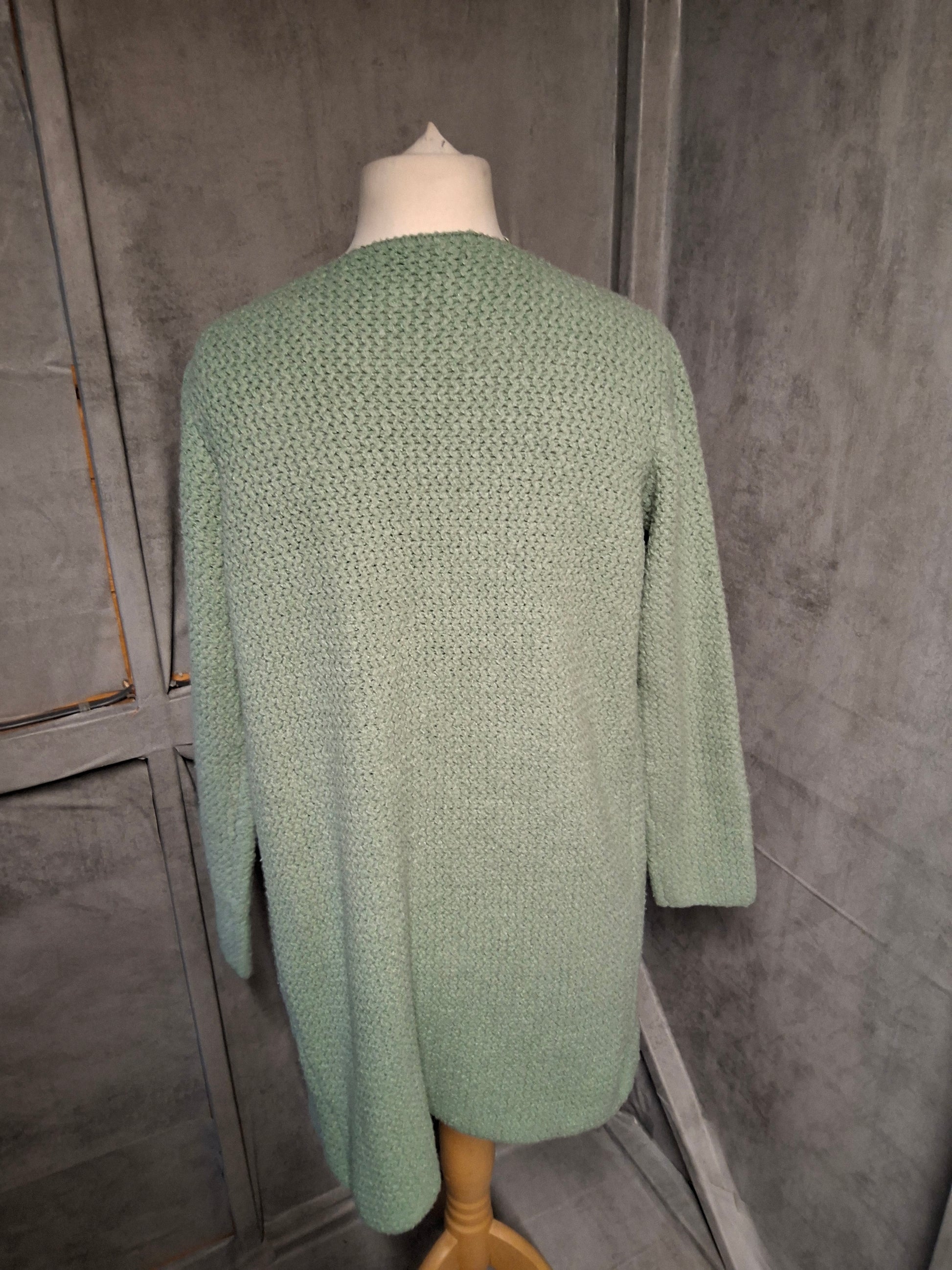 Primark Green Knit Open Midi Cardigan ā Size 6/8 ā Oversized with Pockets