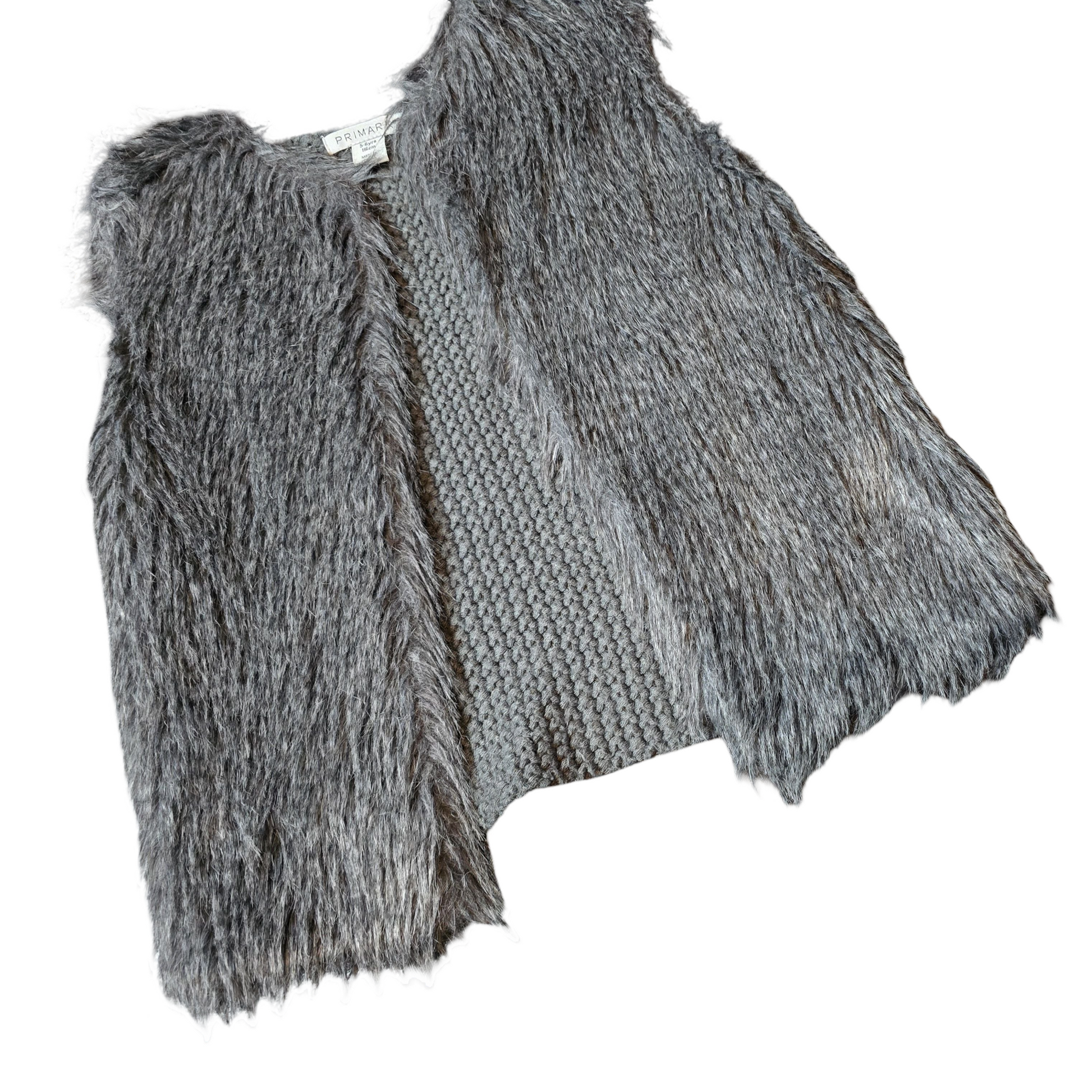 Primark Grey Faux Fur & Knit Gilet – Girls 5–6 Years – Sleeveless Open Front