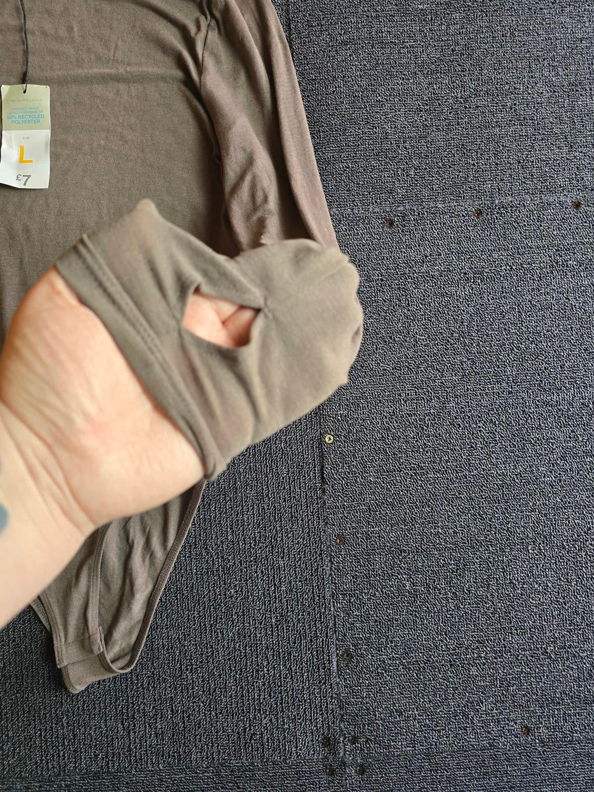Primark Tan Long Sleeve Bodysuit L Size 16 Thumbholes NWT