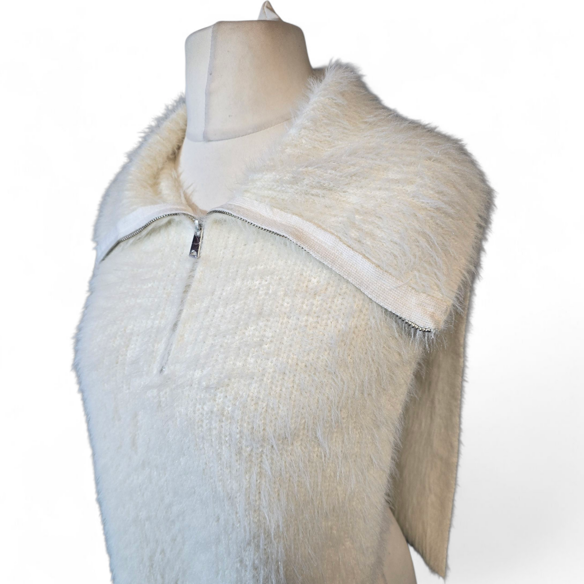 Primark White Fluffy Sleeveless Top – ¼ Zip Large Collar – One Size (Fits size 8–14)