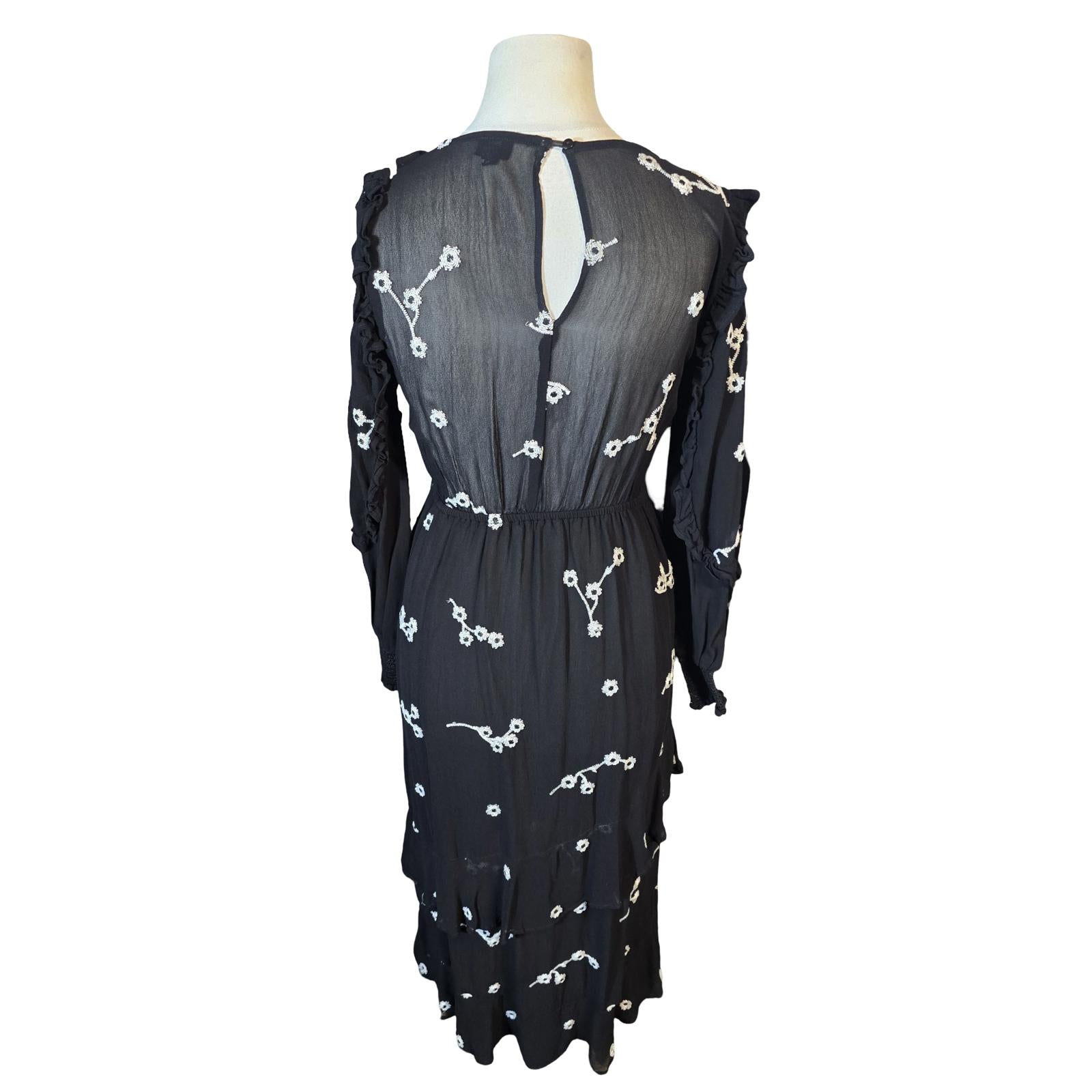 River Island Black & White Floral Frill Midi Dress β Size 8